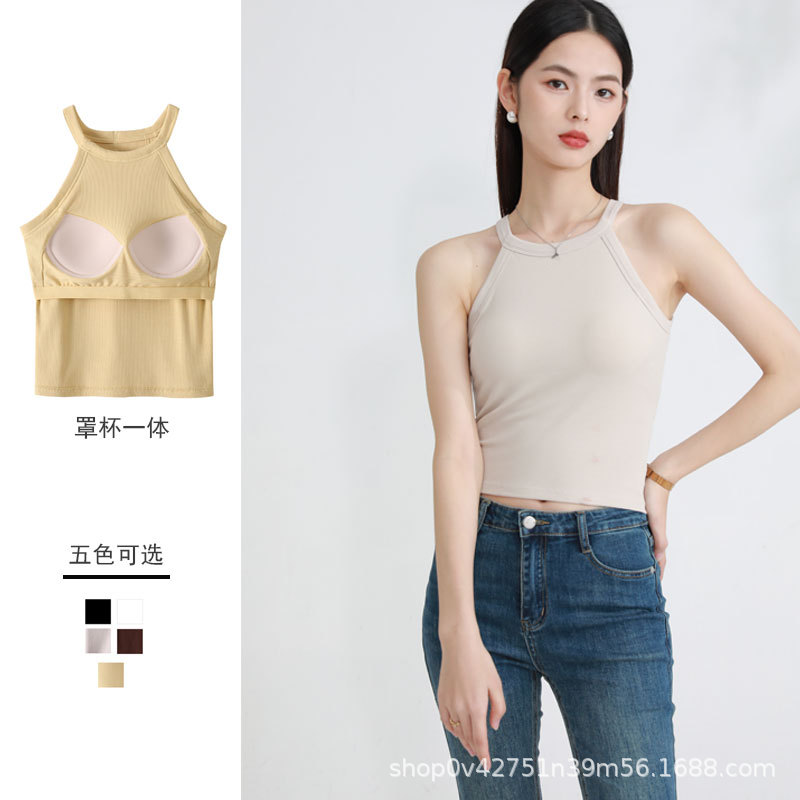 春夏新款带胸垫挂脖背心女罩杯一体式聚拢美背吊带打底显瘦女