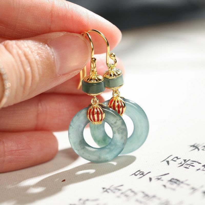 新款镀金饰品仿冰种翡翠民族风复古风耳环耳坠饰品