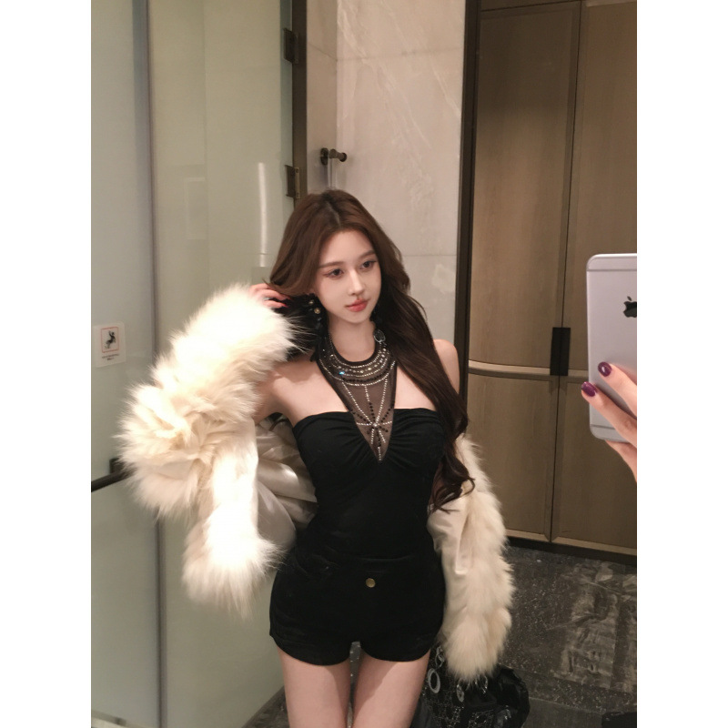 名媛气质设计感闪钻内搭抹胸带袖套上衣女背心