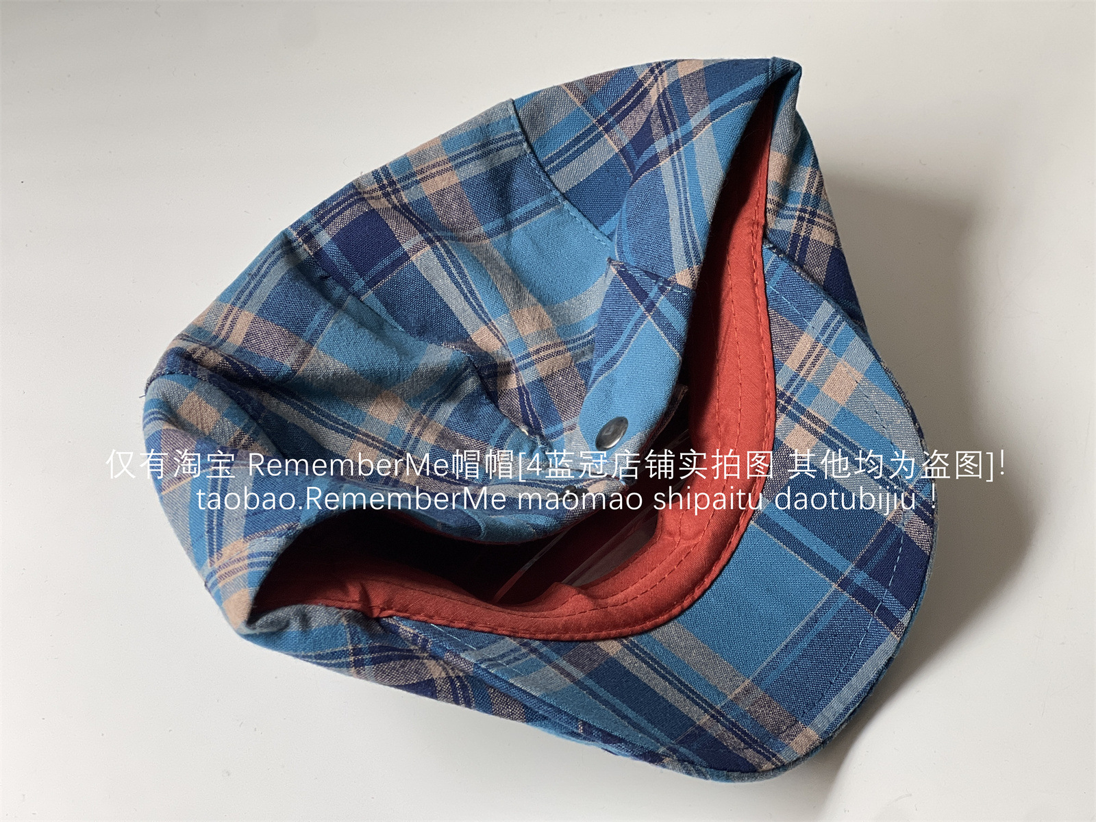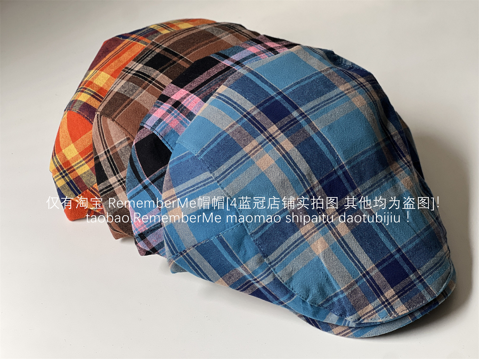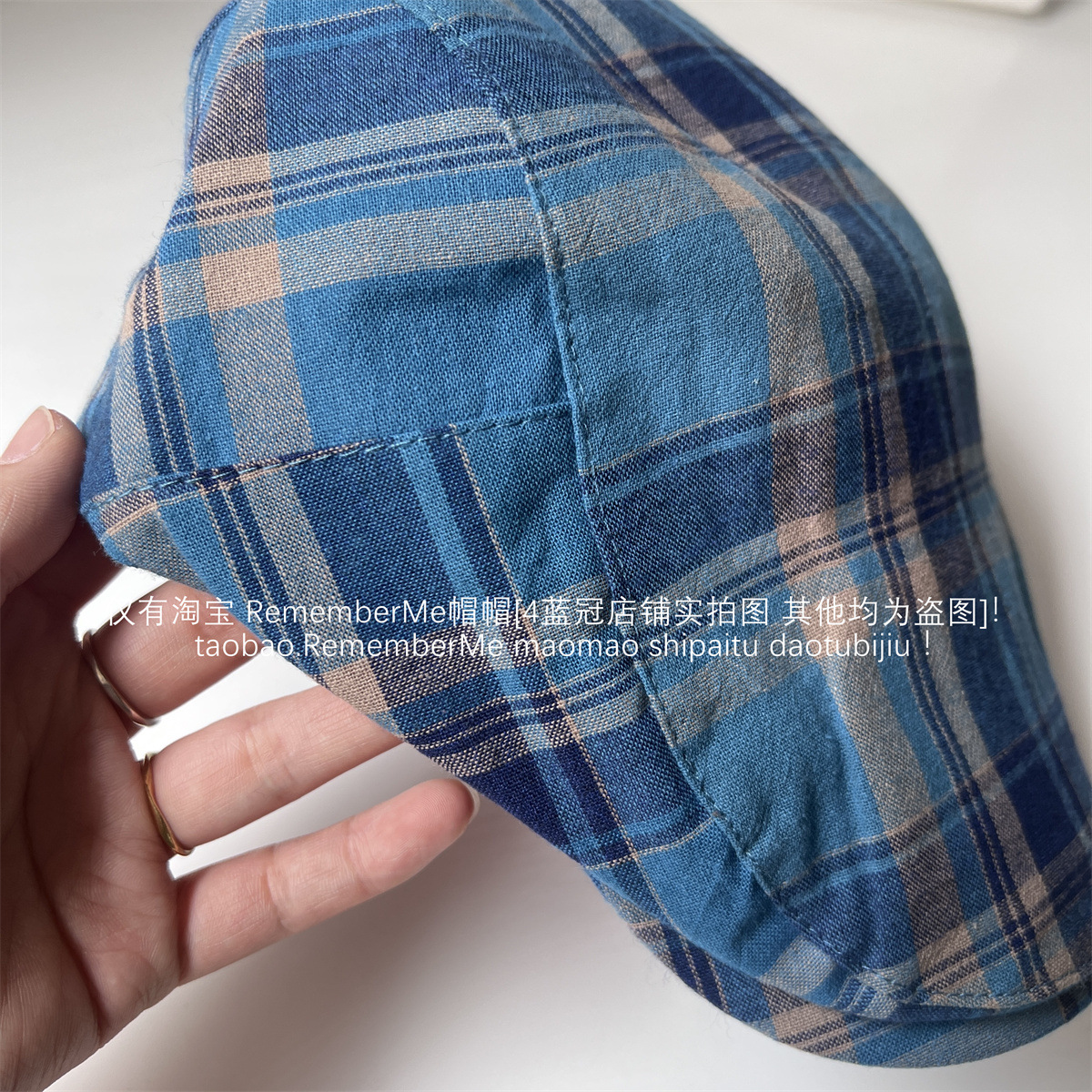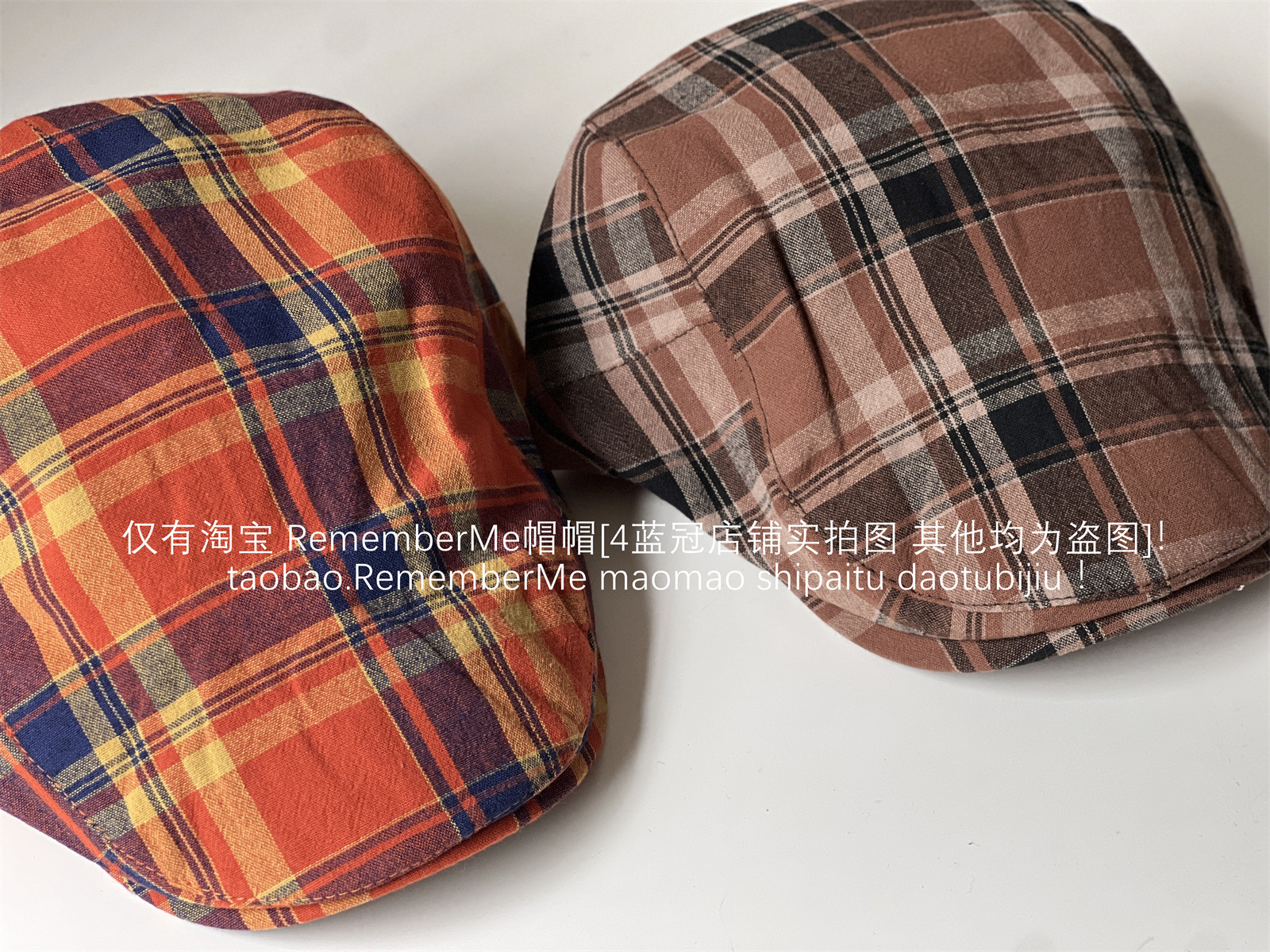 夏季薄款显白海盐蓝色格纹前进帽日系显脸小炸街橘色复古画家帽女