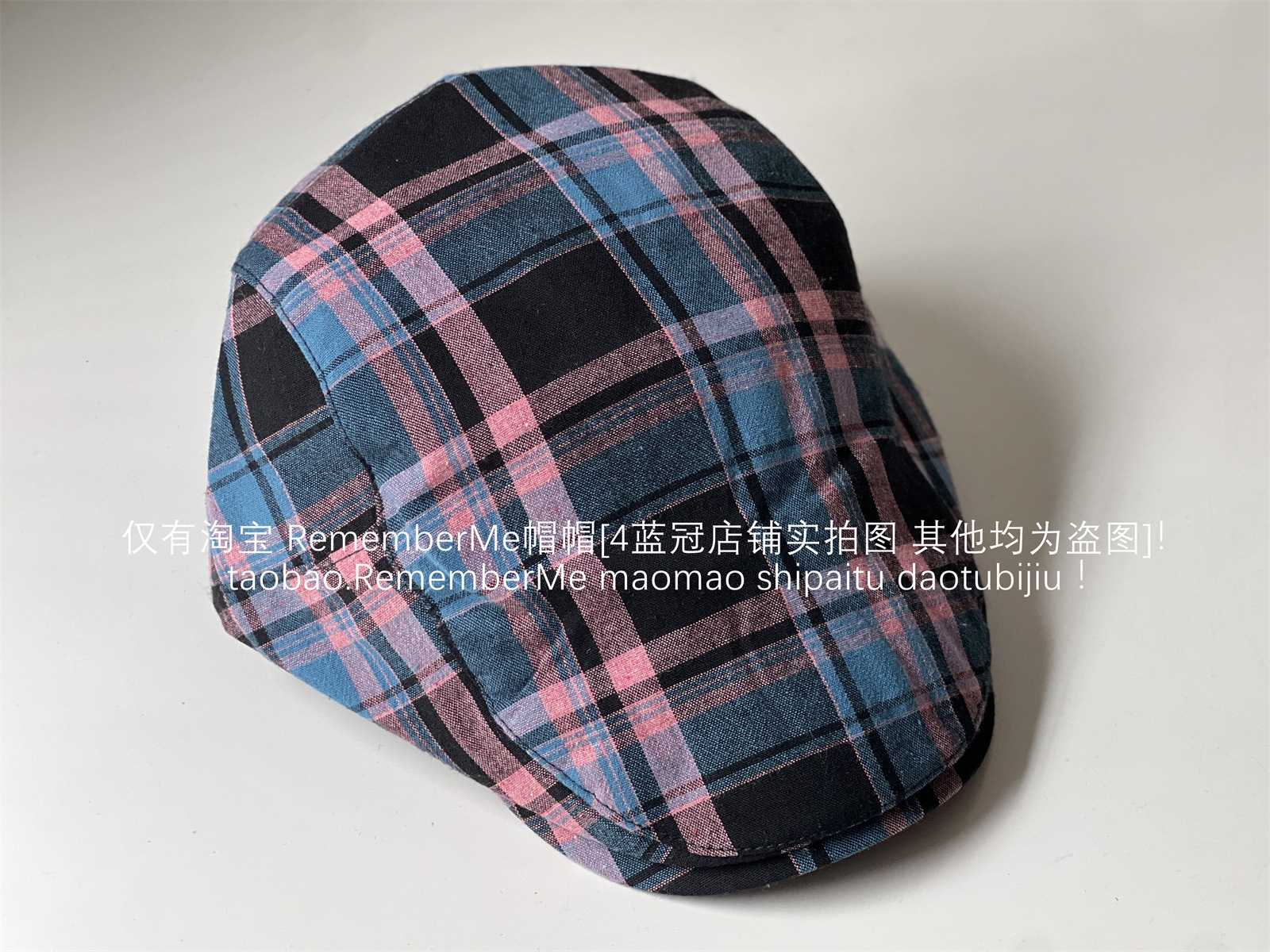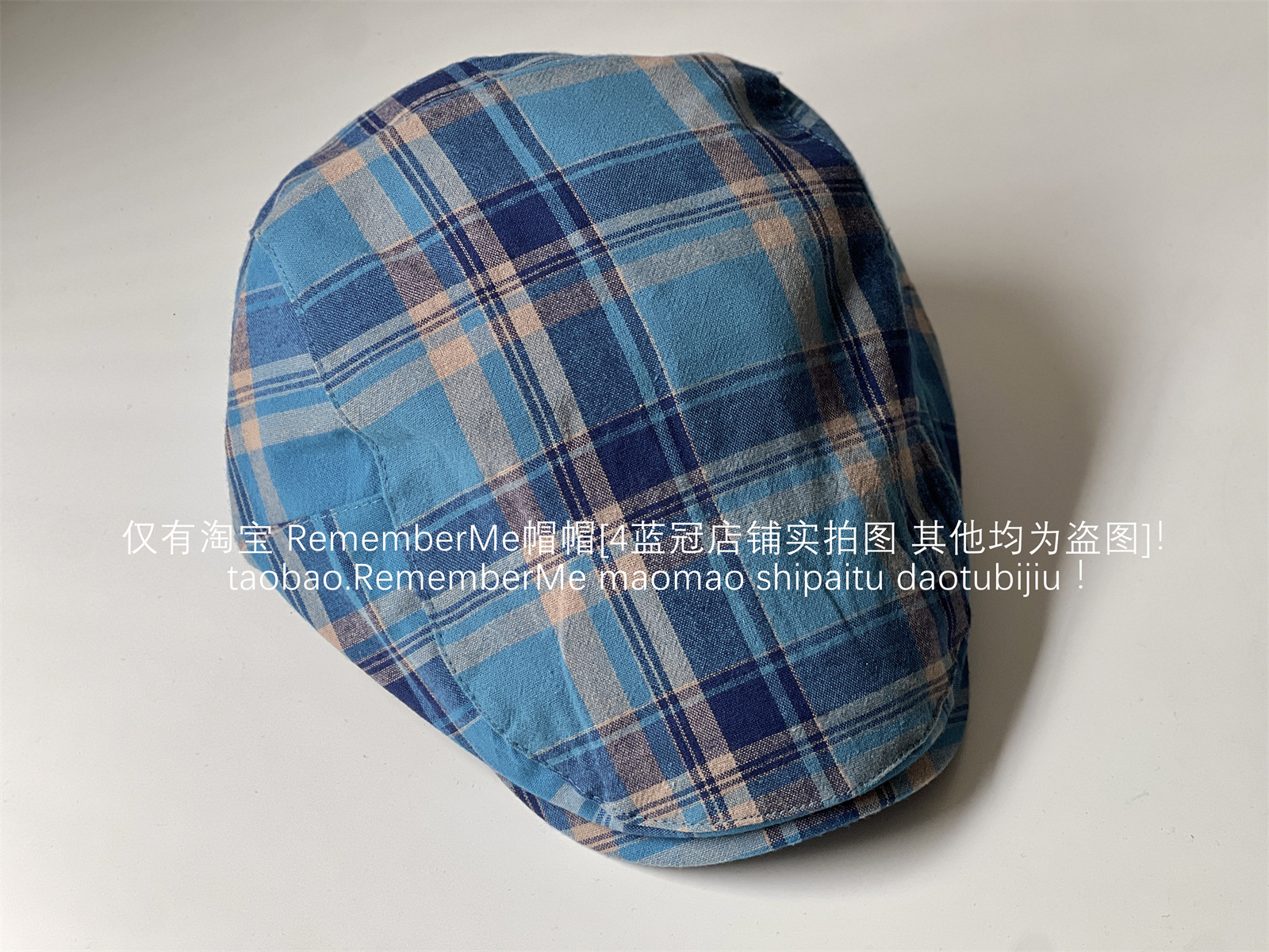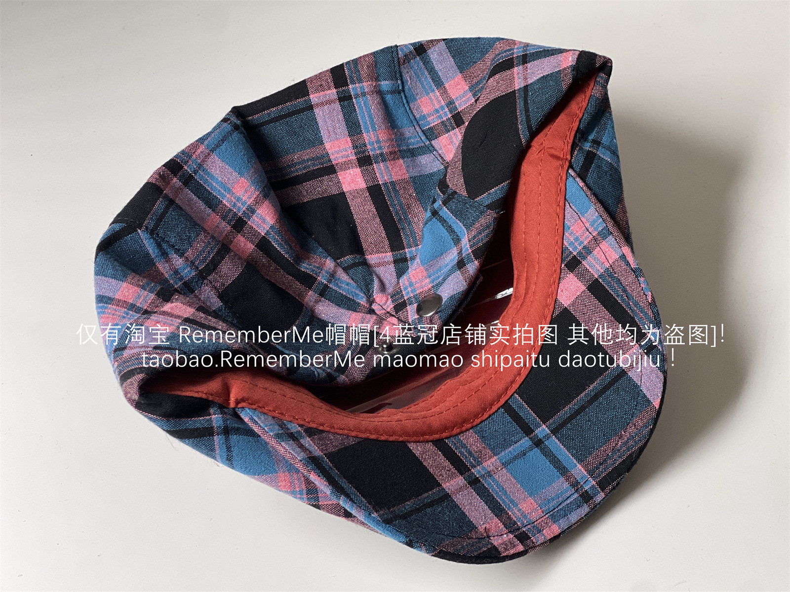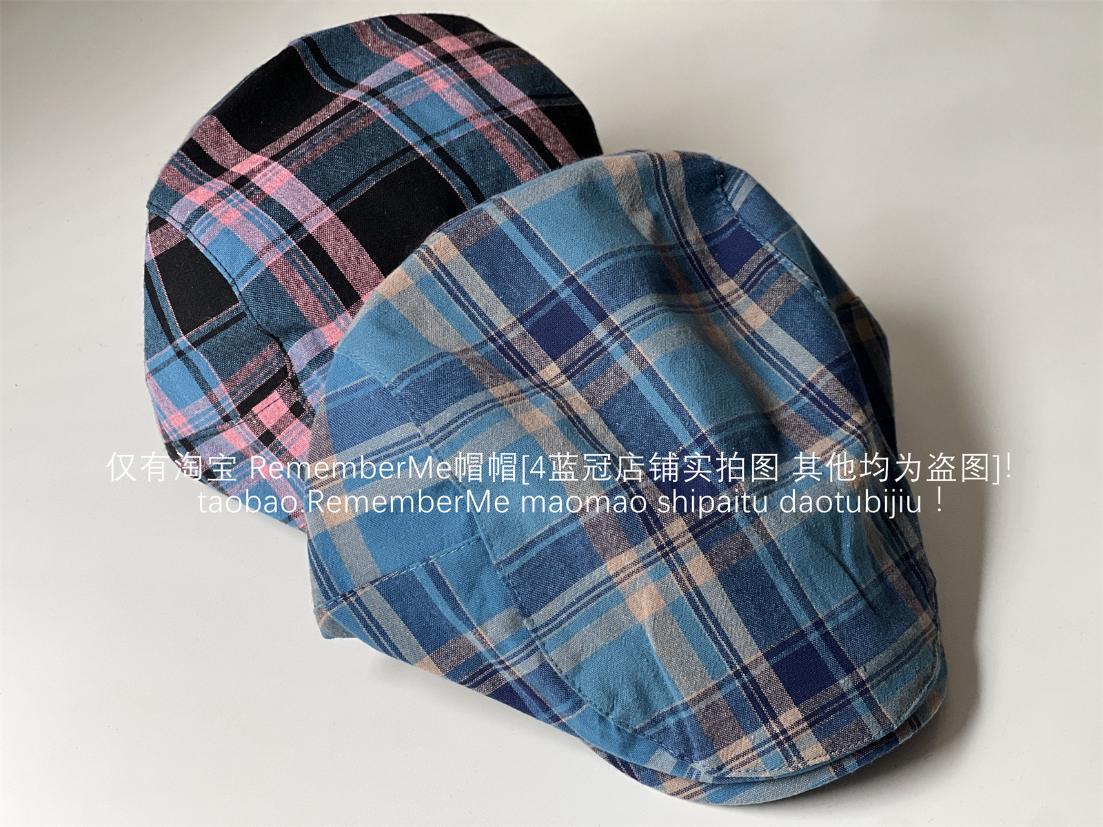 夏季薄款显白海盐蓝色格纹前进帽日系显脸小炸街橘色复古画家帽女