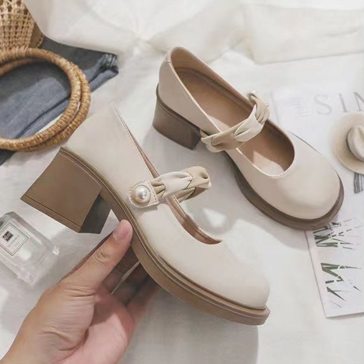 玛丽珍小皮鞋女圆头2025春季新款网红中跟鞋百搭粗跟浅口厚底单鞋