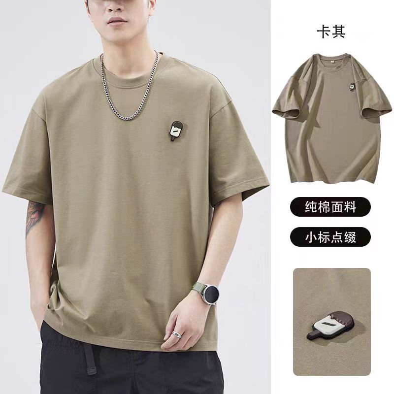 美式重磅纯棉短袖t恤男潮牌宽松大码夏季冰激凌小标圆领半袖上衣