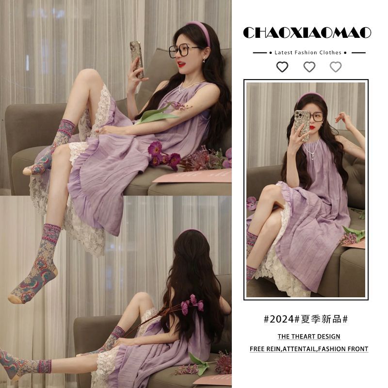 夏新款穿搭韩系套装女时尚舒适设计感甜美拼接花边连衣裙潮