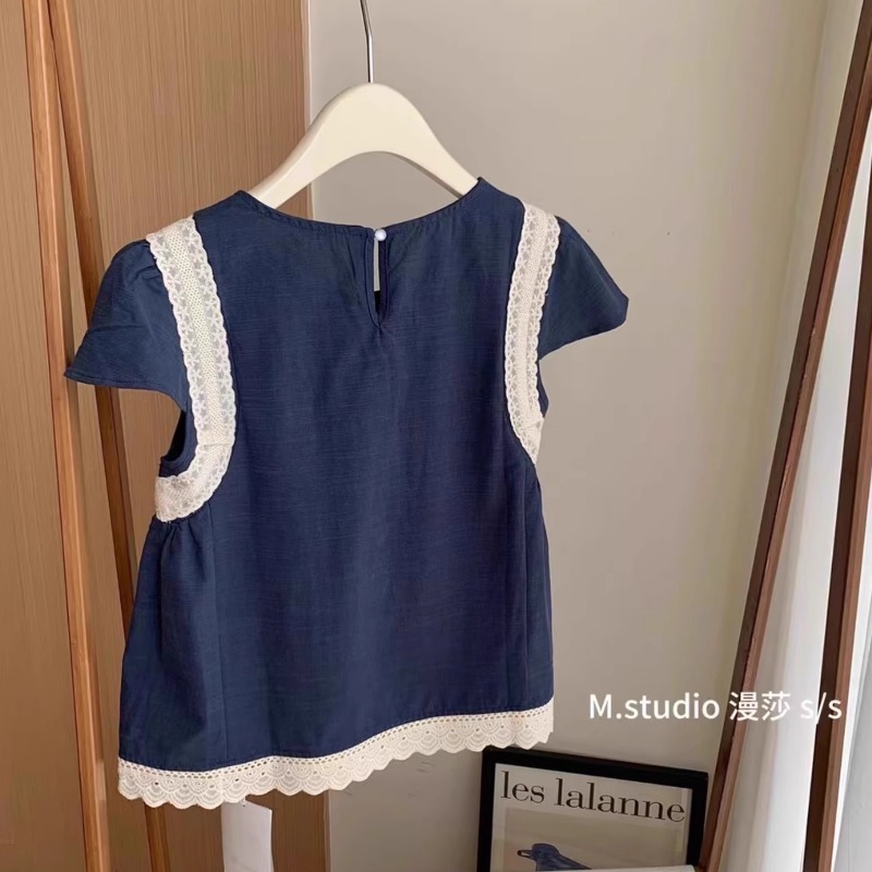 韩国拼接蕾丝小飞袖娃娃衬衫上衣夏