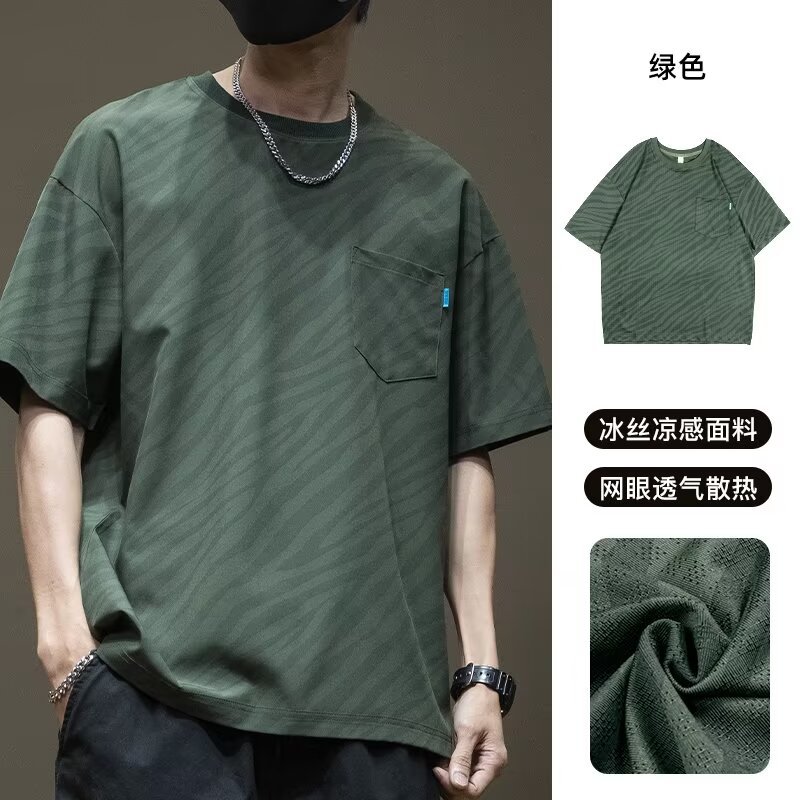 夏季冰丝短袖T恤男薄款网眼速干上衣加肥加大胖子宽松大码半袖衫
