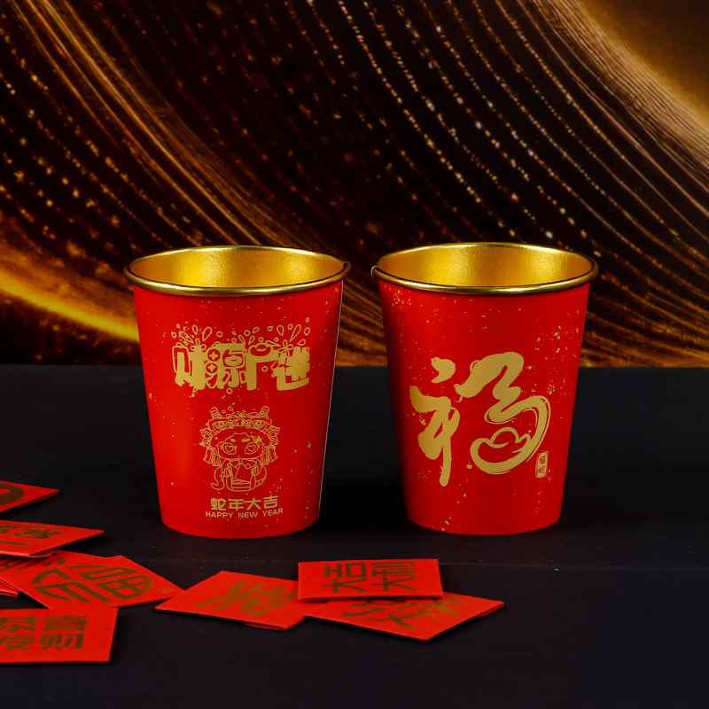 蛇年金箔纸杯家用升学宴婚庆一次性纸杯子结婚喜庆金箔纸