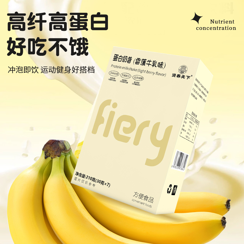 蛋白奶昔粉高纤维高蛋白草莓香蕉牛奶牛乳代餐饱腹速食轻食身冲饮