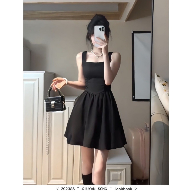 法式赫本风夏季新款黑色吊带连衣裙子女小个子气质短裙小黑裙