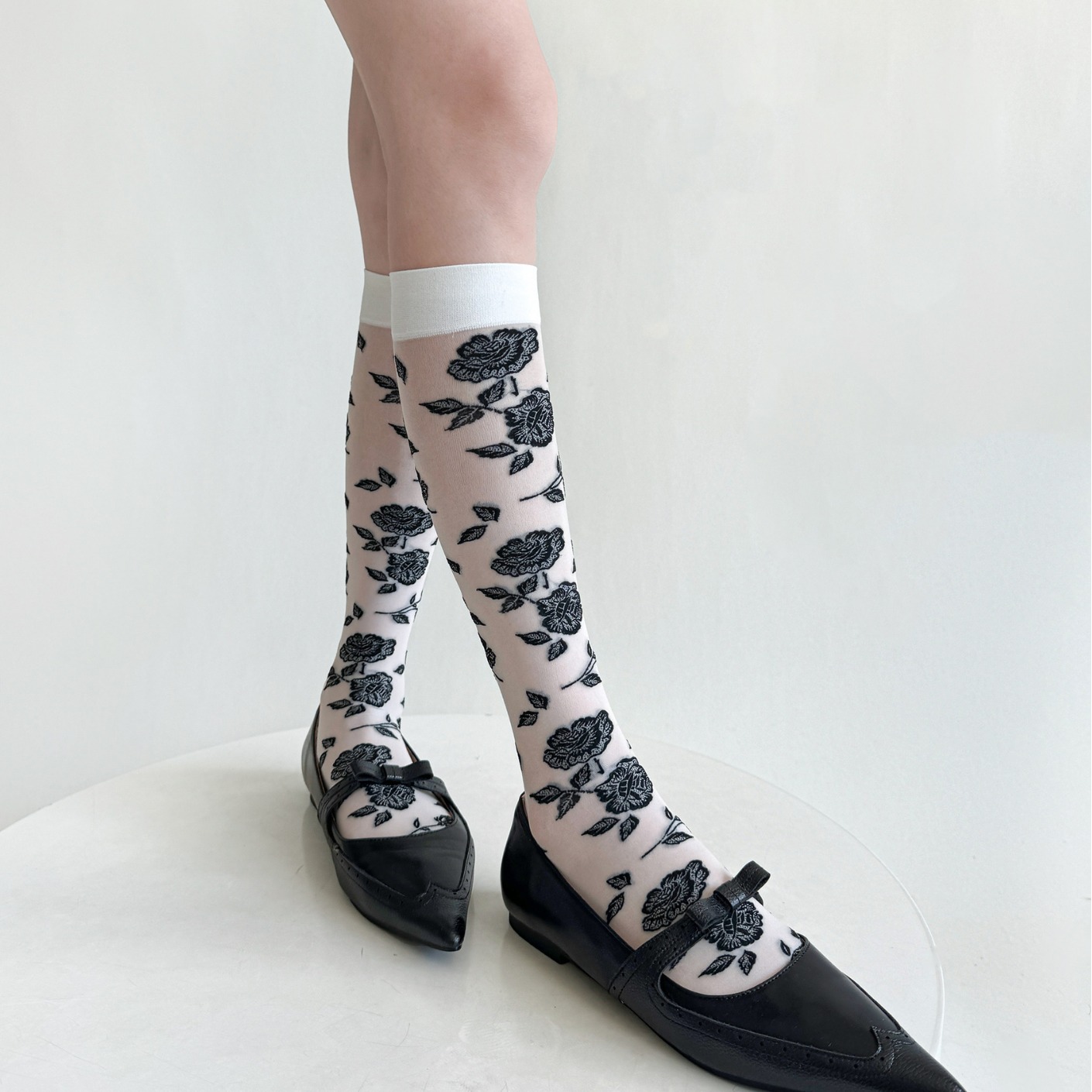 新款提花小腿袜JK日系复古玫瑰花显瘦薄款天鹅绒及膝甜酷女袜黑白