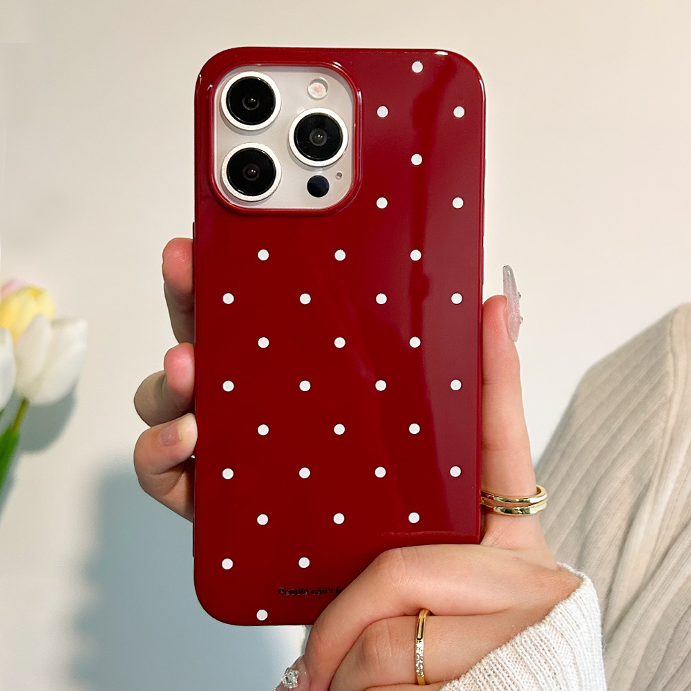 酒红白色小点iPhone14promax苹果手机壳15plus果冻软壳13亮面防摔