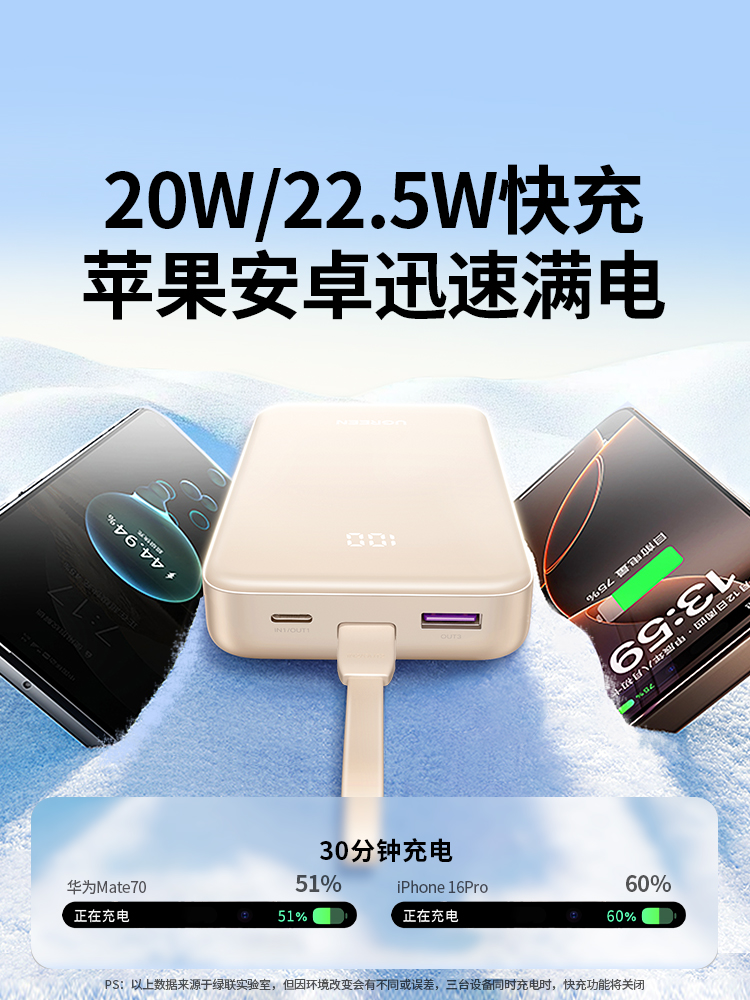 2025新款充电宝20000毫安自带线快充16大容量移动电源