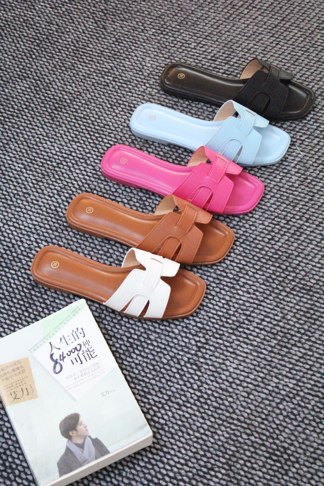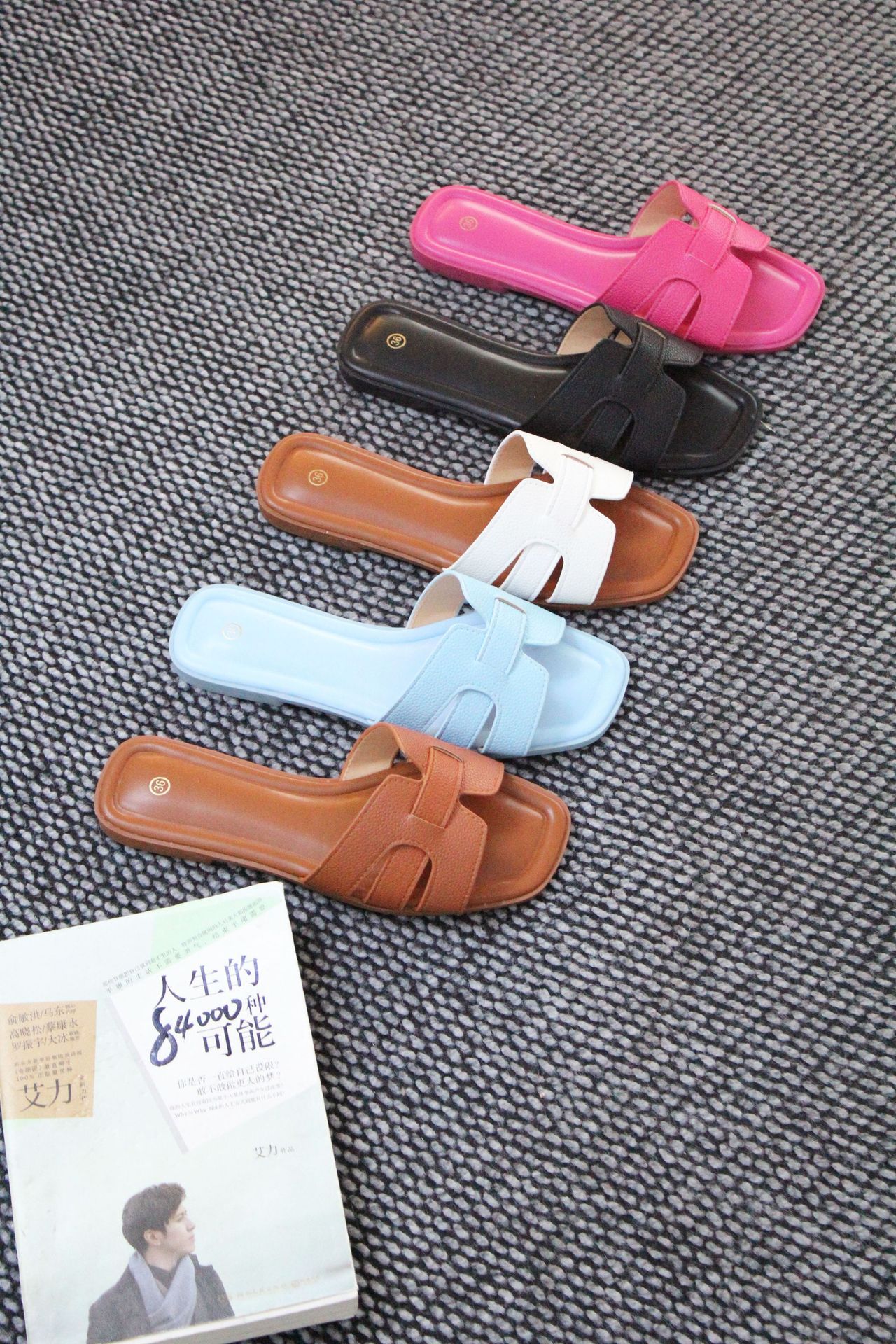 拖鞋平底方头时尚凉拖鞋多色工艺鞋