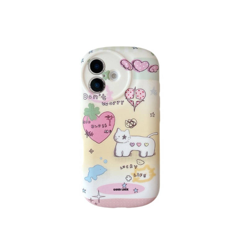 爱心猫咪适用iPhone16pro 苹果16手机壳新款13/14椭圆软壳