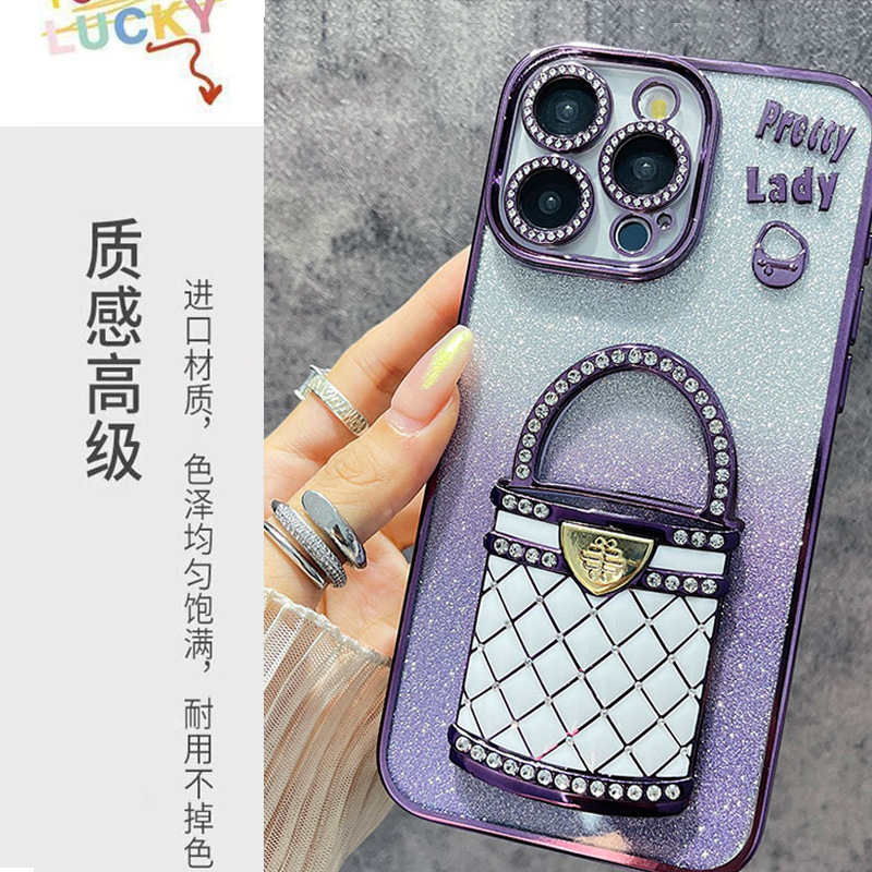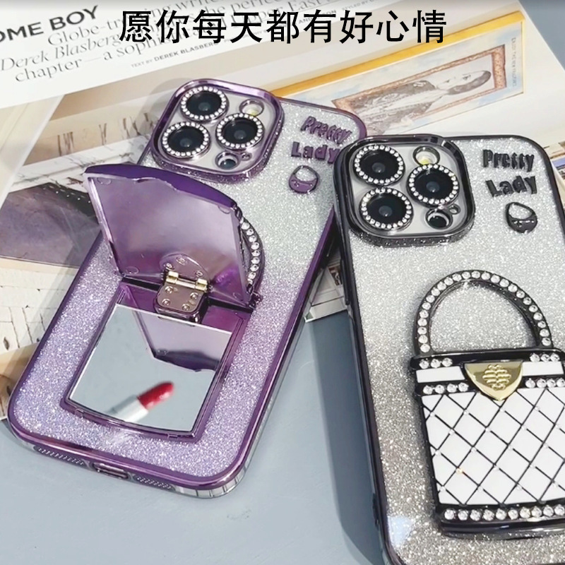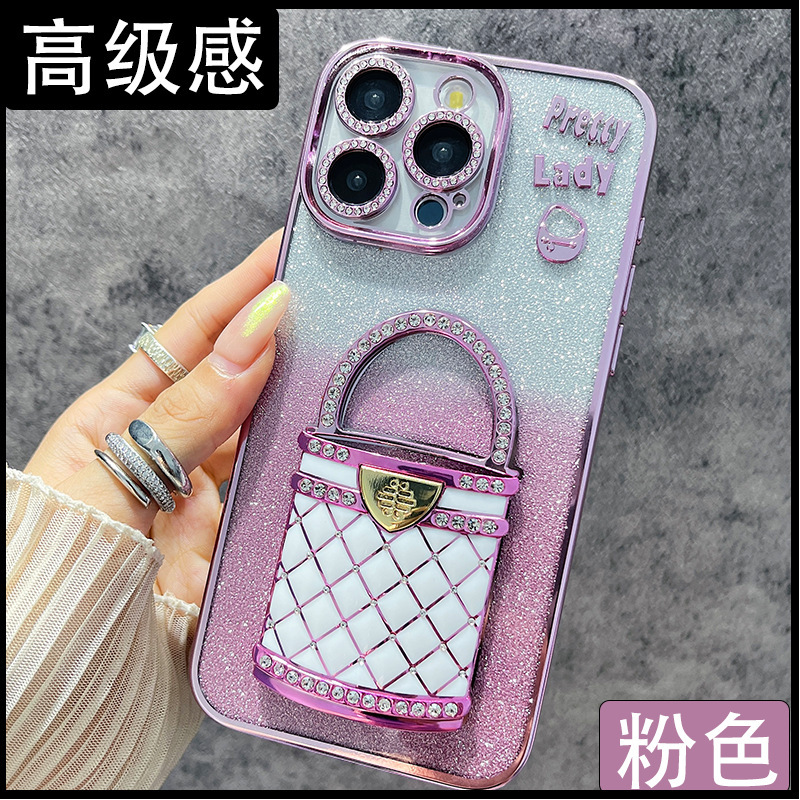 适用iphone16pro手机壳高级感15pro保护套华为P70Pro带支架镜闪粉
