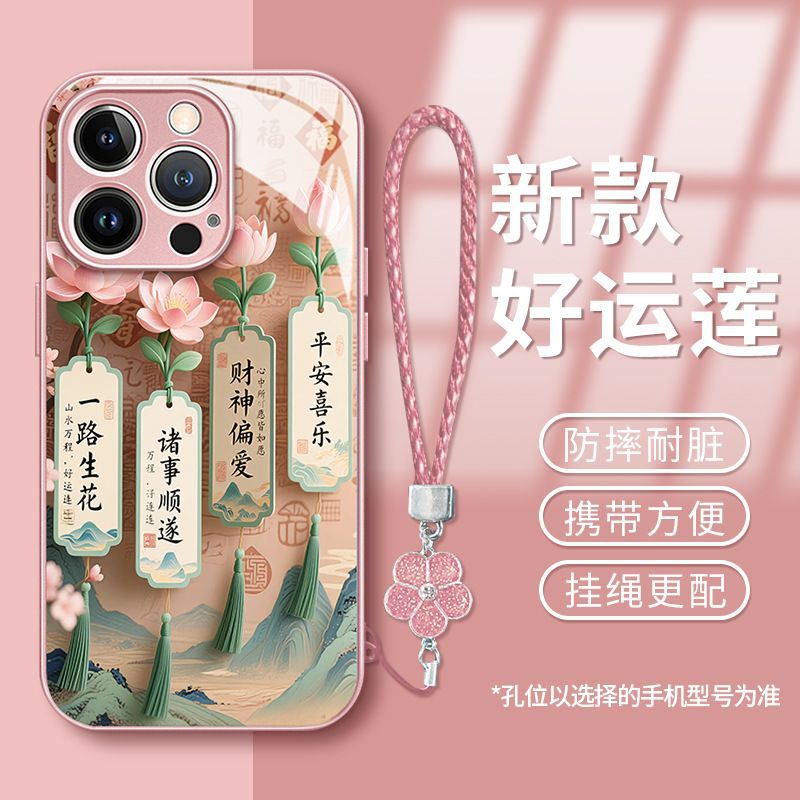 - 【好运莲莲&粉色+挂绳】液态玻璃