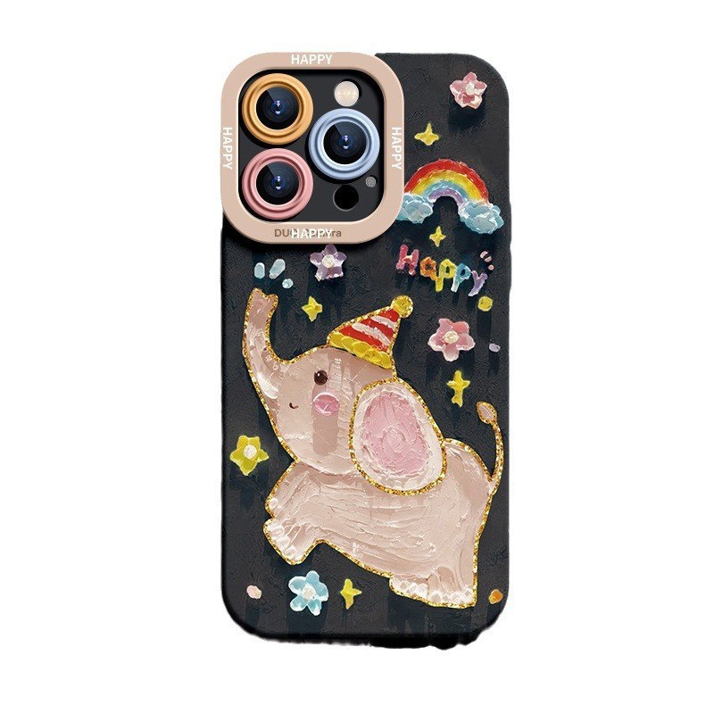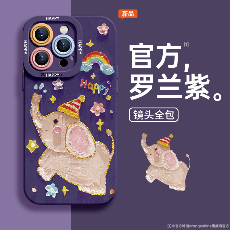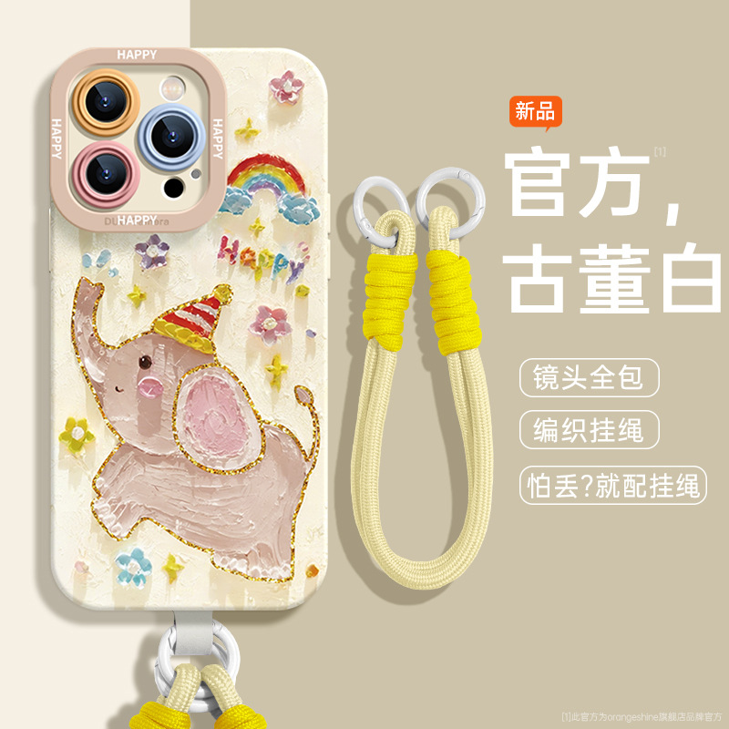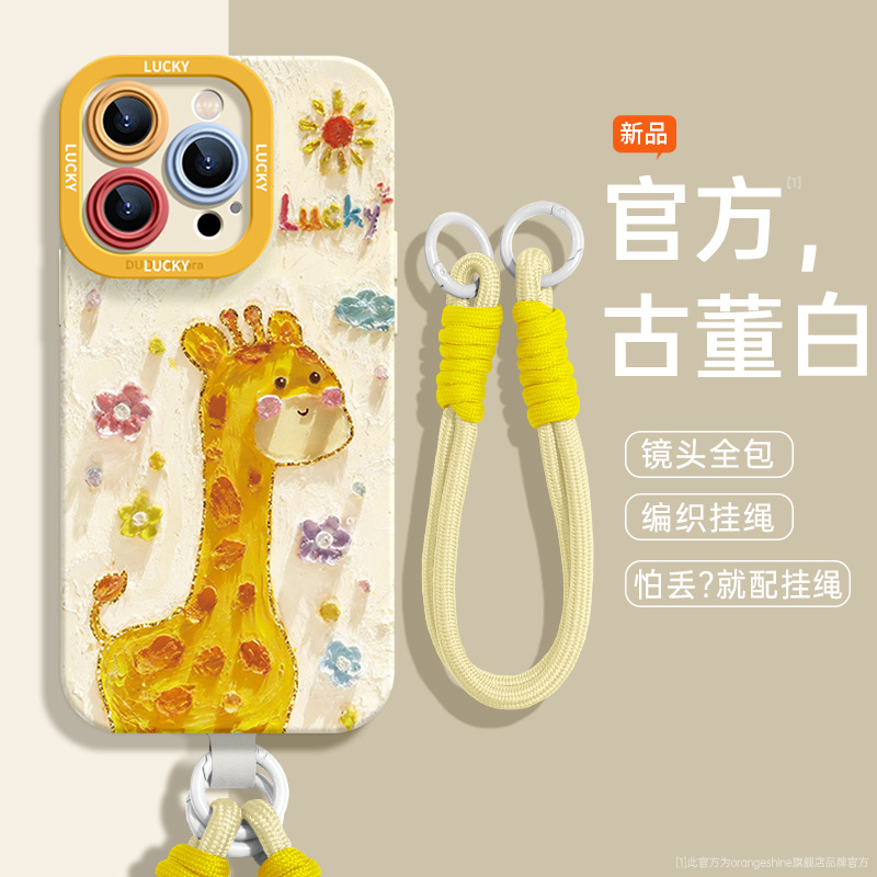 适用苹果14手机壳iphone15promax小飞象长颈鹿挂绳13可爱卡通12套