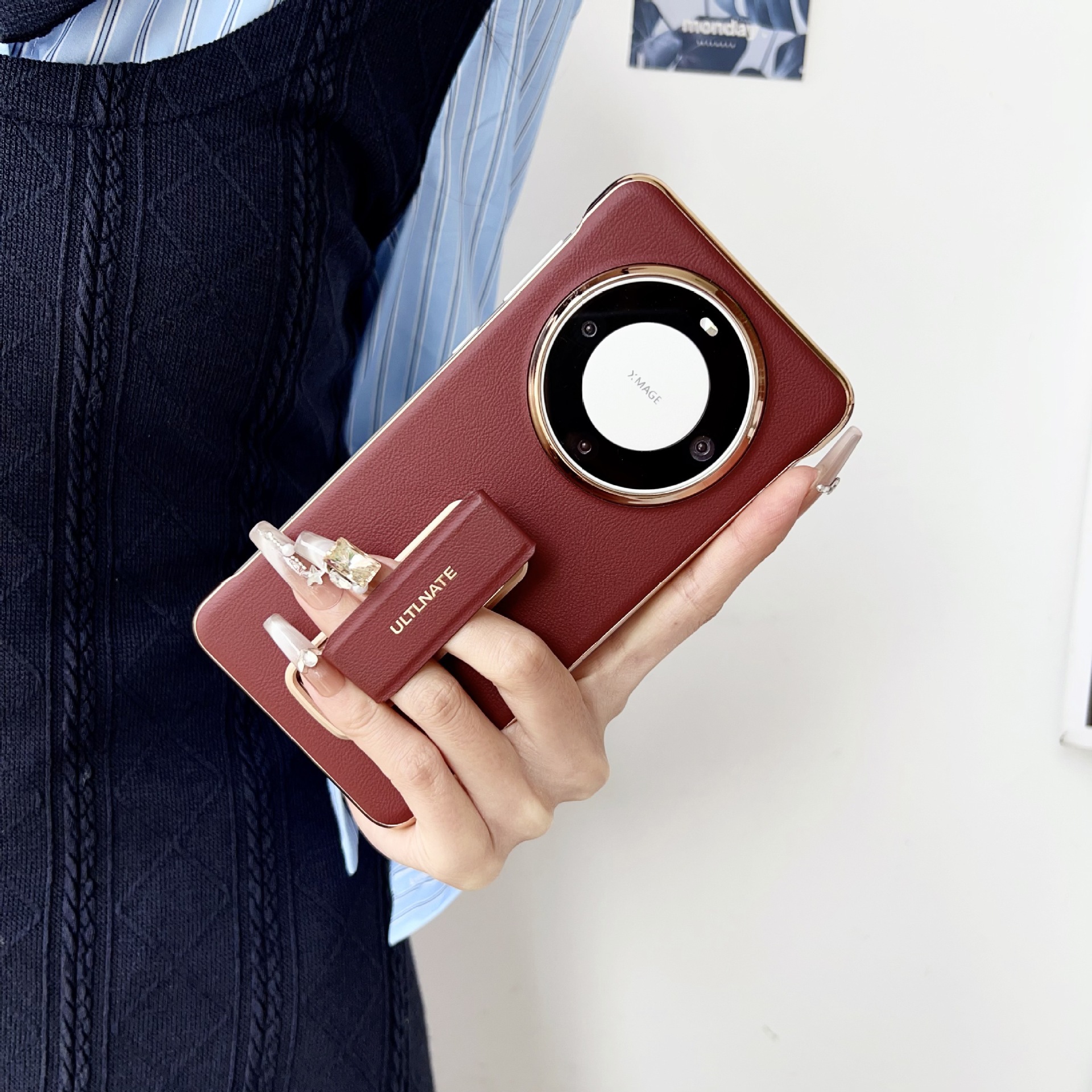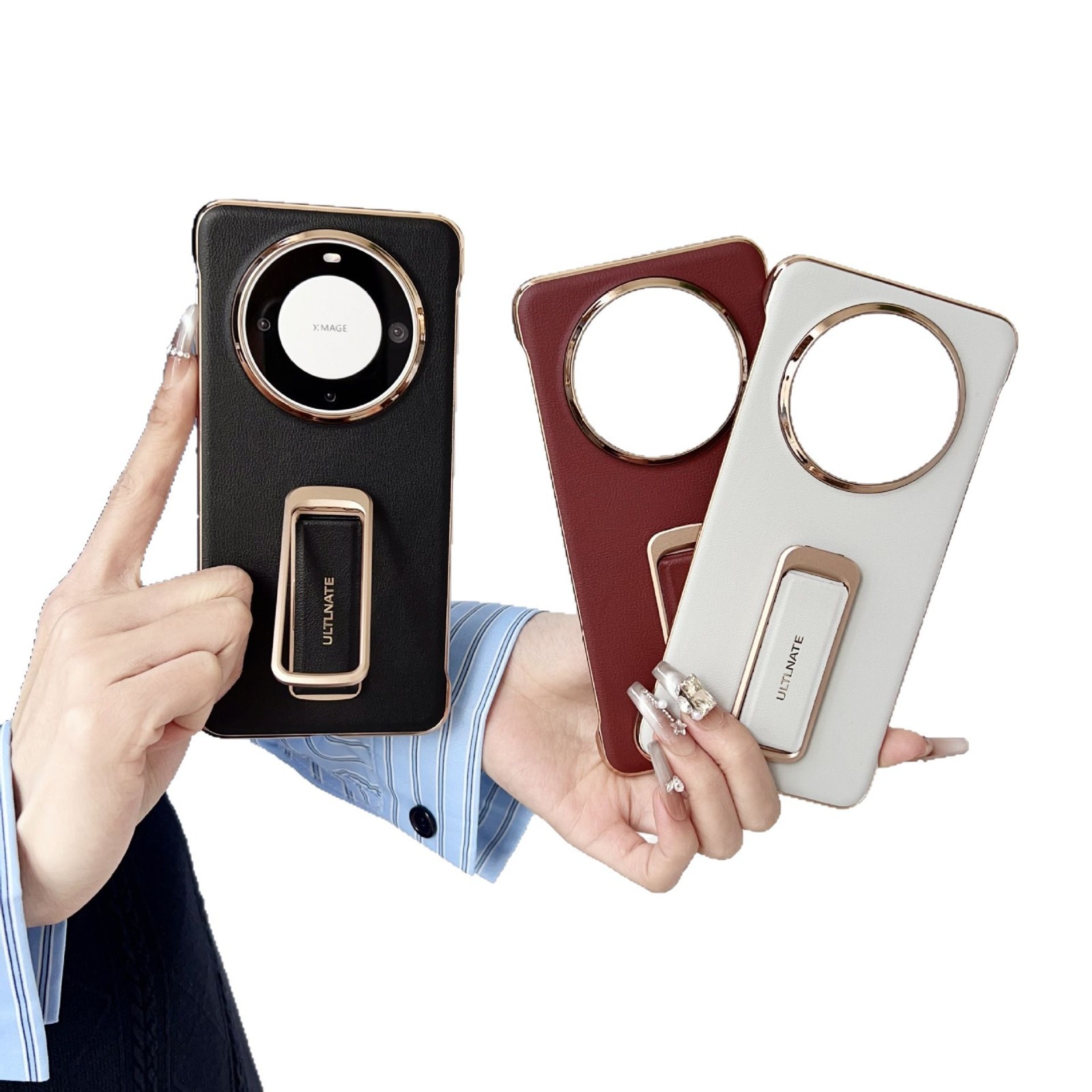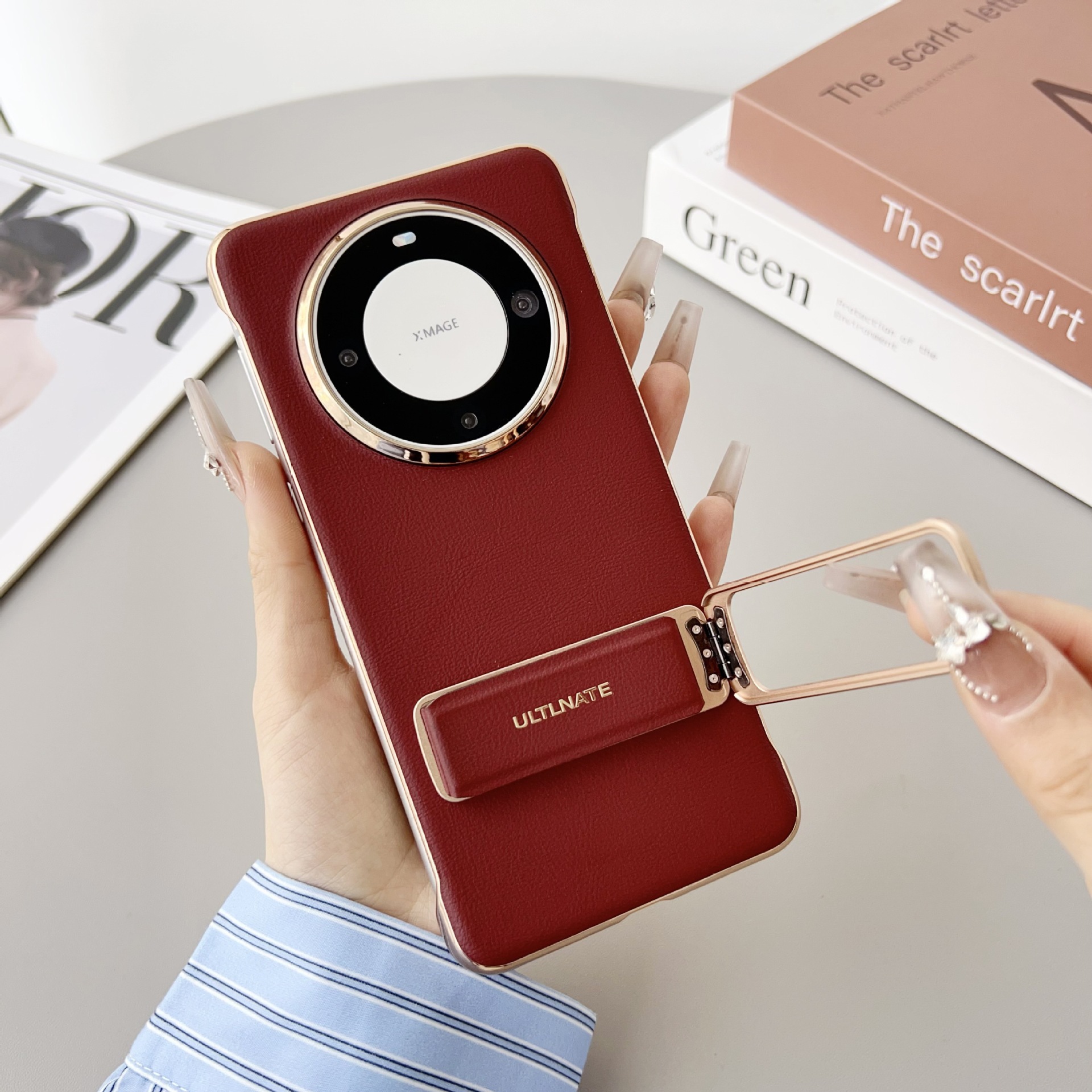 适用华为Mate70RS旋转支架手机壳无边框mate60pro真皮防摔保护套