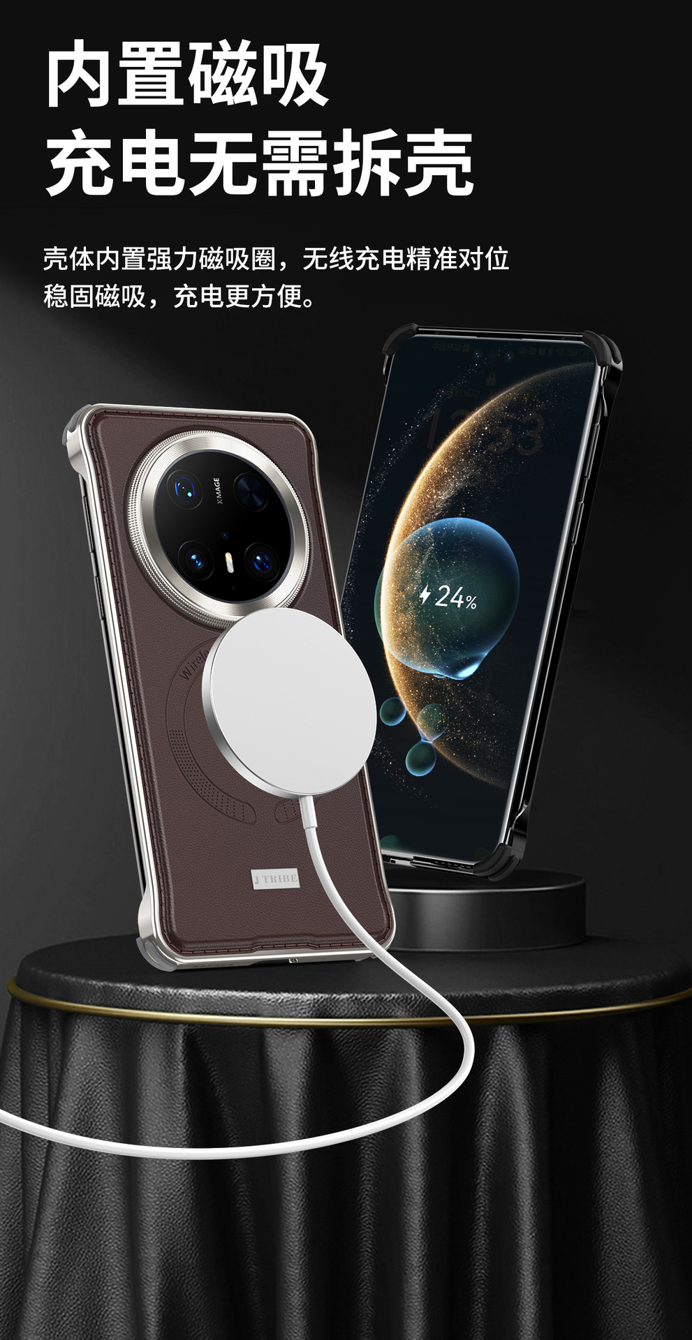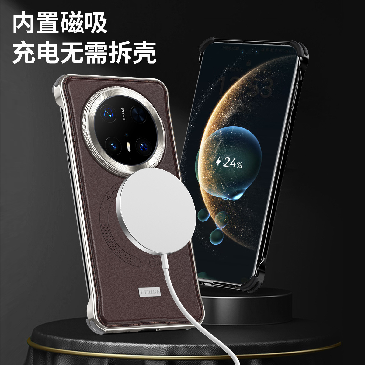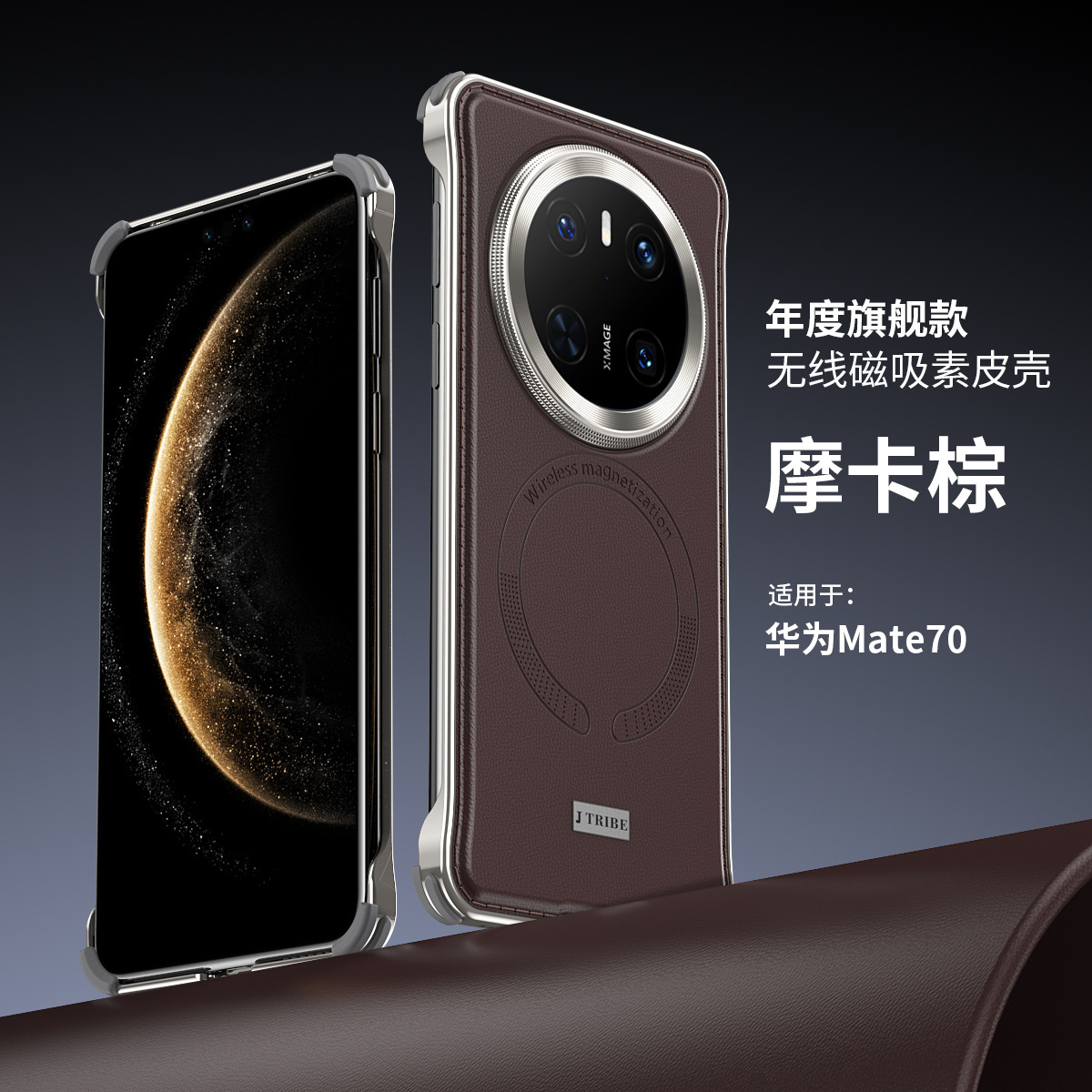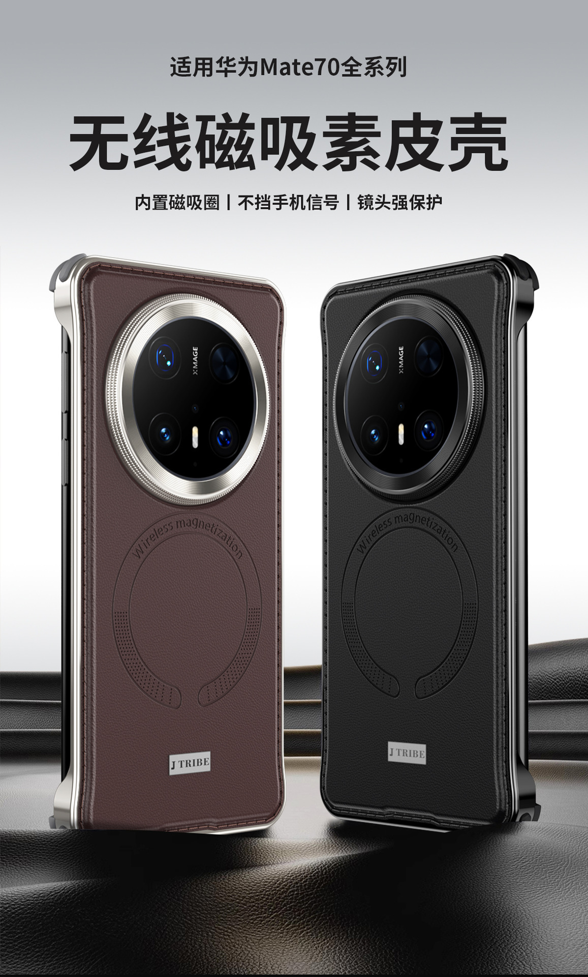 无线磁吸素皮适用华为mate70保护壳70pro手机壳60pro防摔无边框