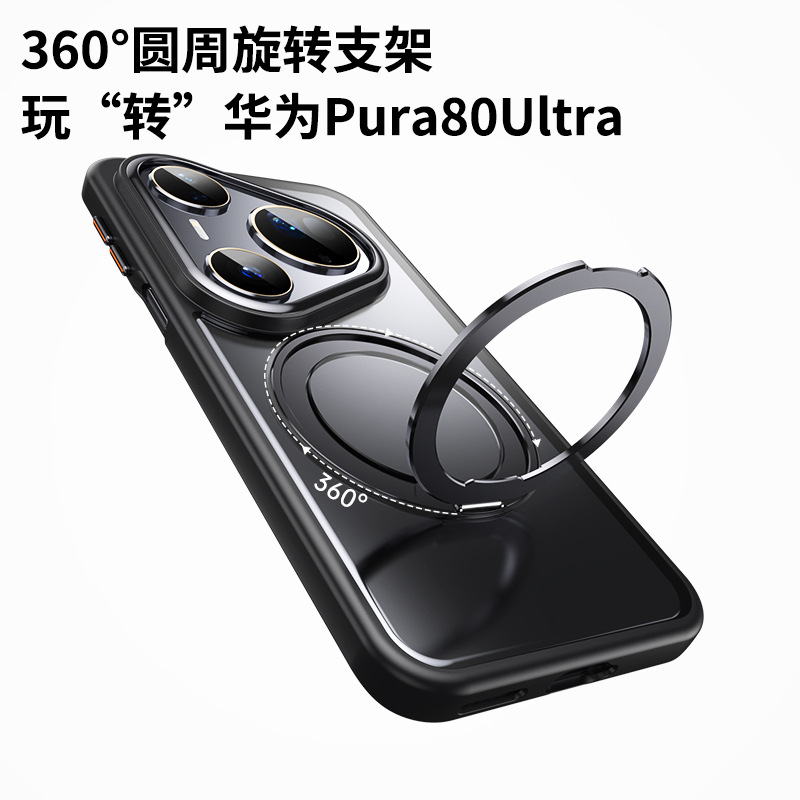 适用华为Pura80透明手机壳磁吸旋转支架P80Pro肤感防摔保护套
