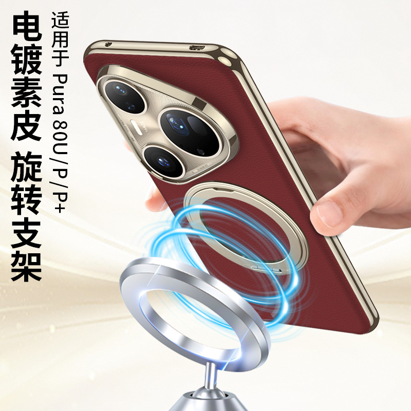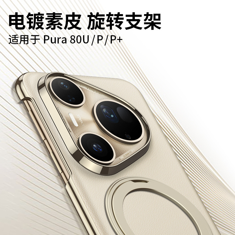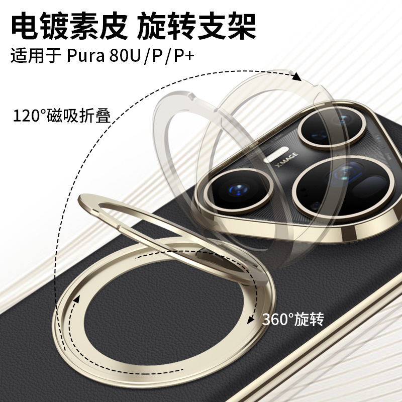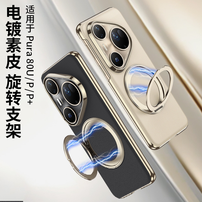 适用华为Pura80Ultra手机壳秒变非凡大师p80pro+电镀素皮旋转支架