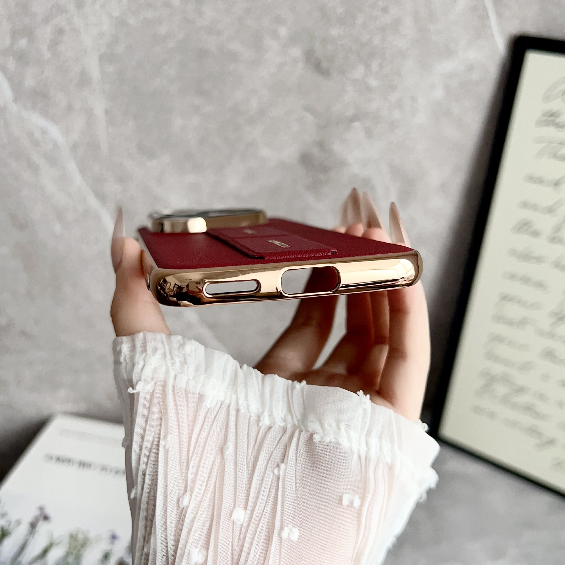 适用华为Pura80Ultra手机壳电镀素皮腕带支架Mate70Pro防摔保护套