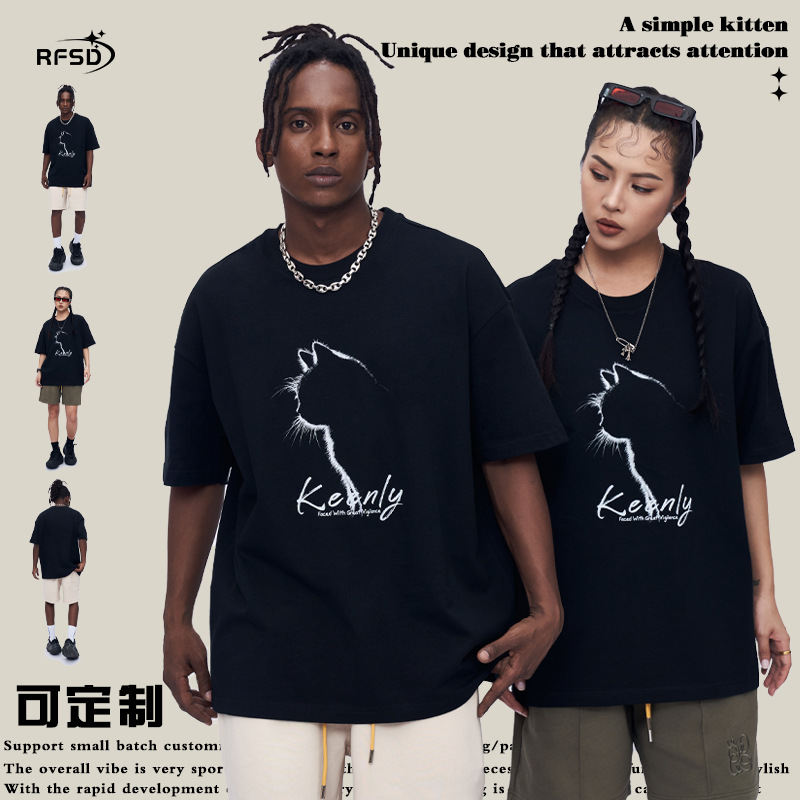 RFSD男装| 250g双纱棉T恤春夏新款宽松潮牌白墨印花短袖男女