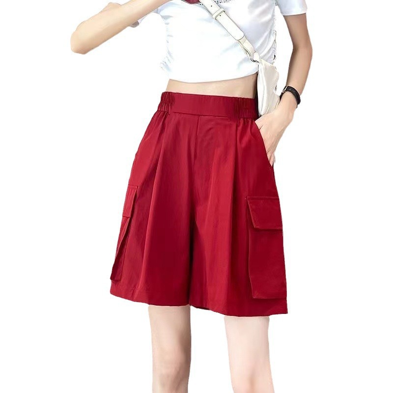 美式工装冰丝速干五分裤女夏季薄款休闲阔腿裤松紧腰显瘦a字短裤