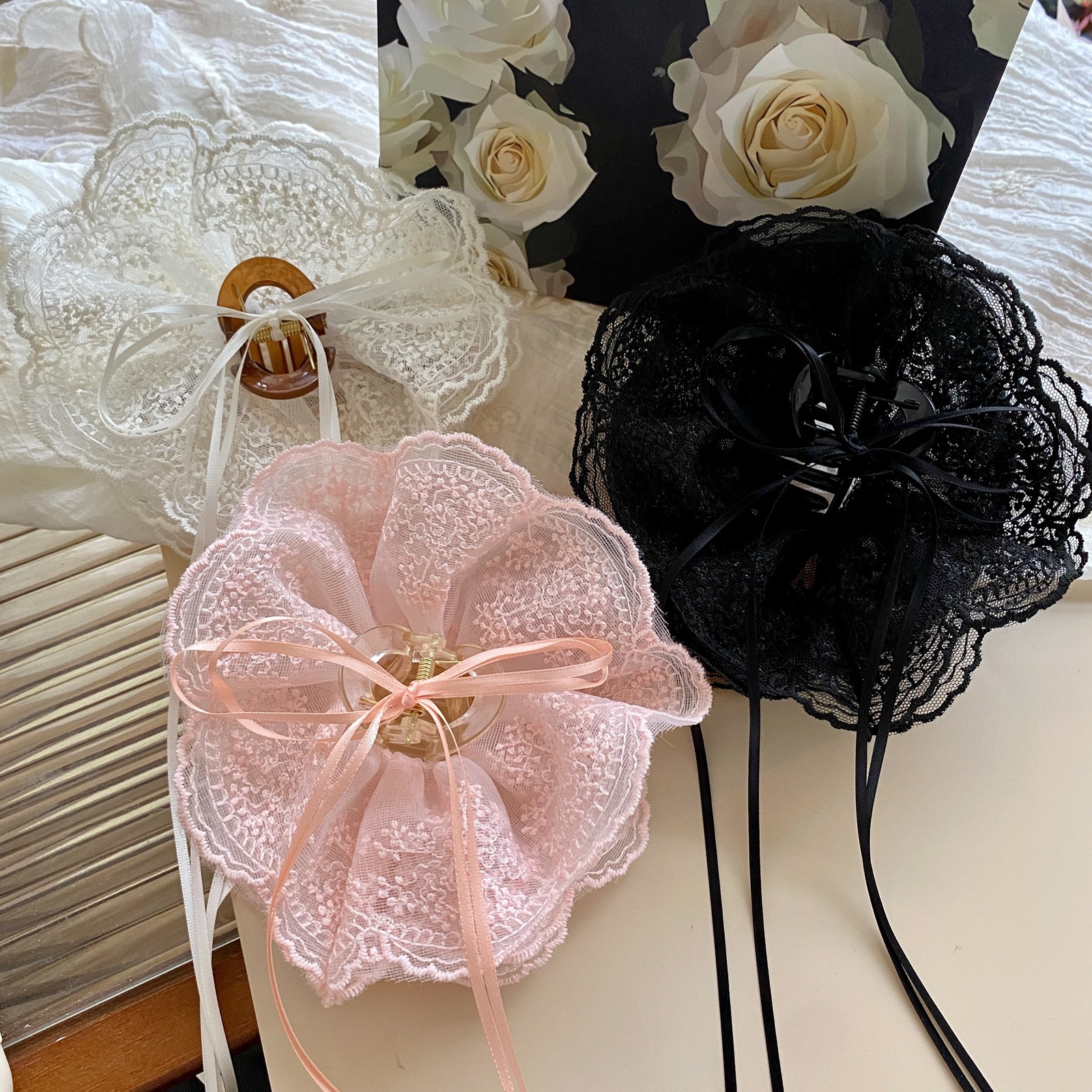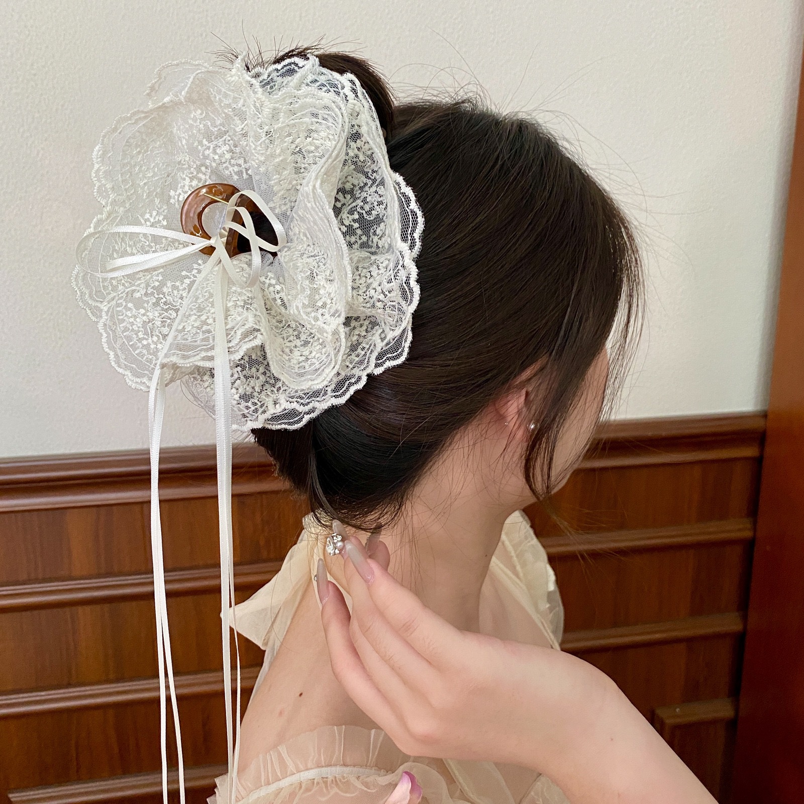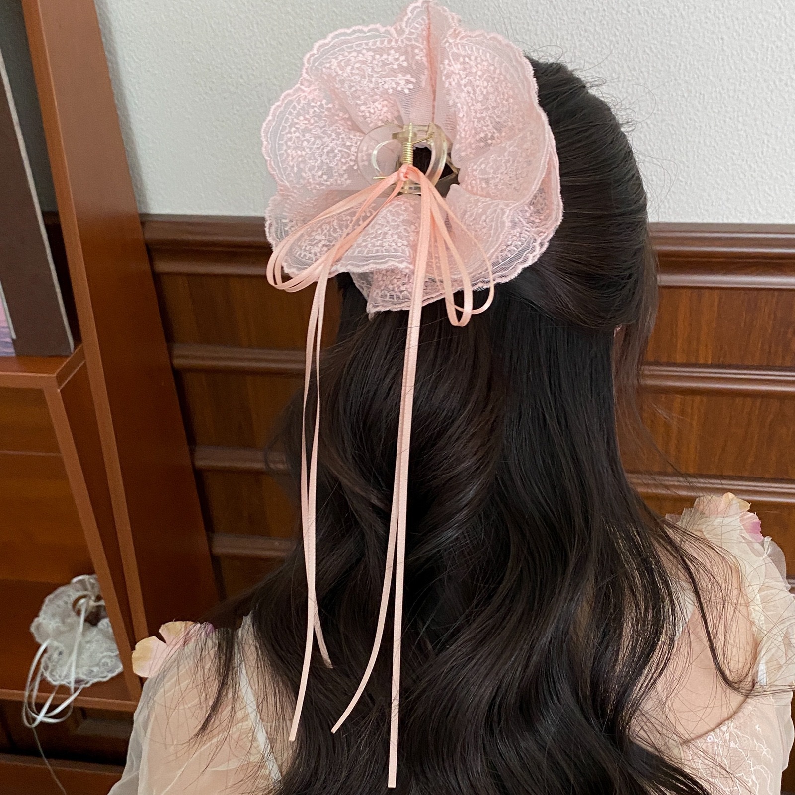 新款芭蕾抓夹甜美蕾丝花边蝴蝶结头饰韩系温柔扎马尾鲨鱼夹女发夹