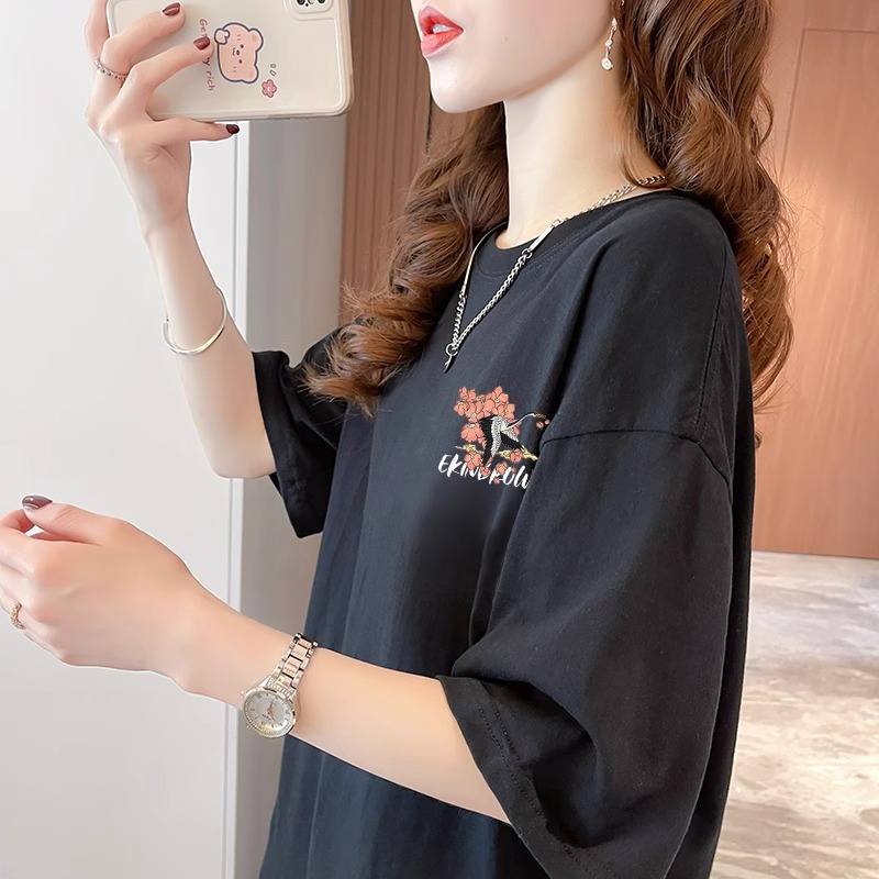 2025大码纯棉短袖t恤女夏季新款韩版宽松时尚半袖休闲印花ins圆领
