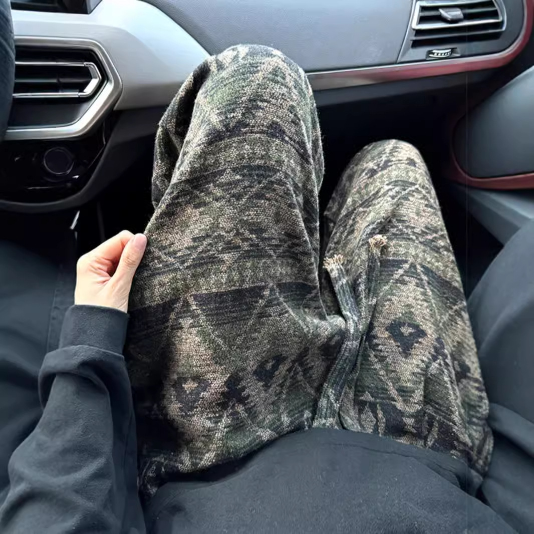 针织脏脏风裤子男款秋冬季民族风提花阔腿裤vintage美式休闲长裤