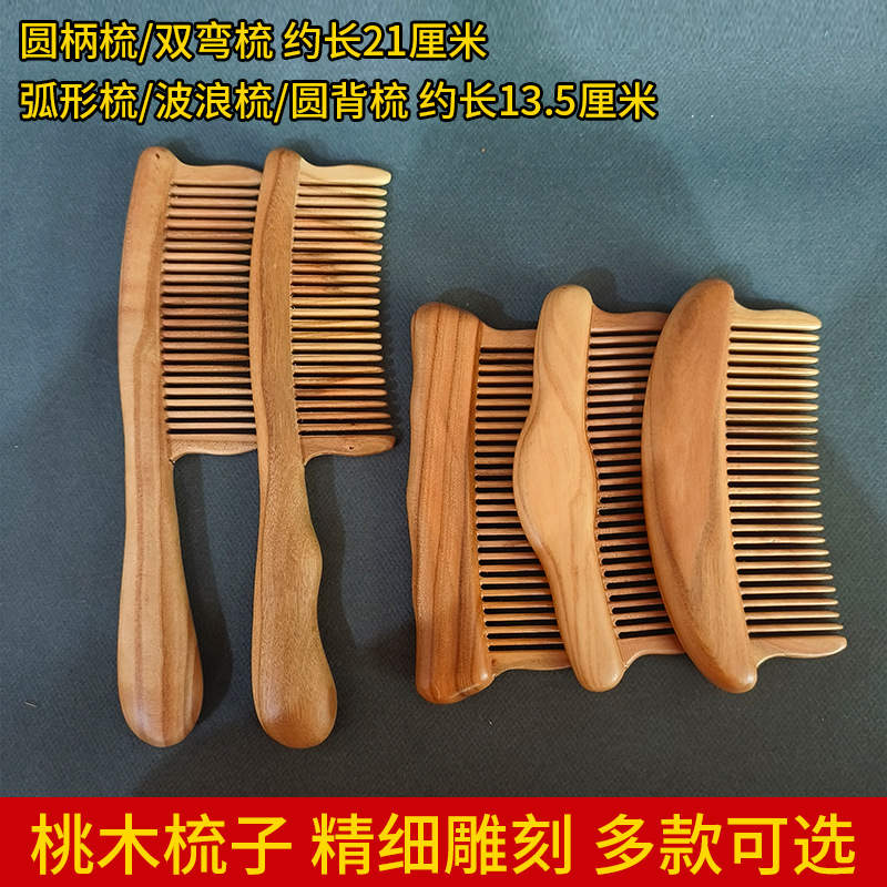 桃木梳子手柄美发梳插齿按摩梳天然正品家用便携木梳波浪梳圆柄梳