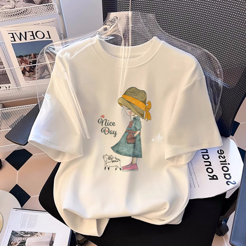 夏季纯棉短袖t恤女2025新款时尚白色半袖宽松中长款上衣
