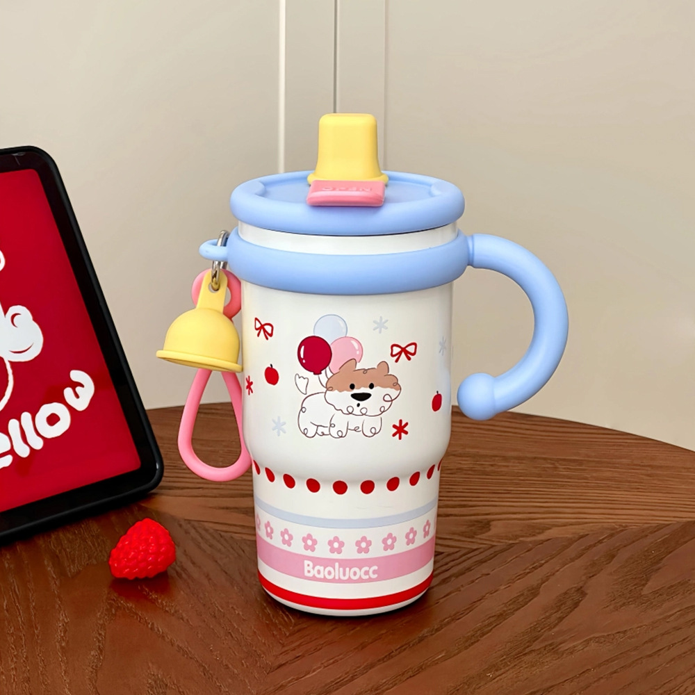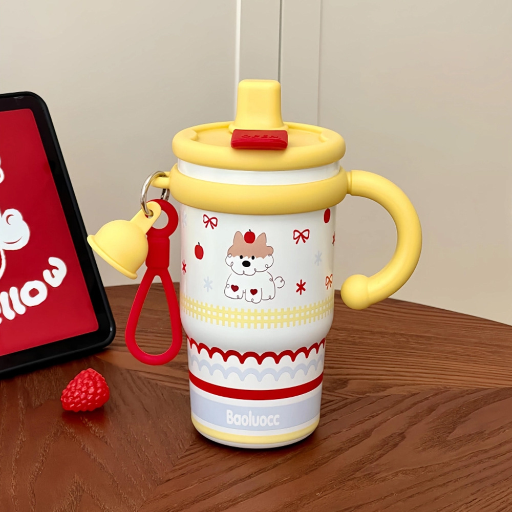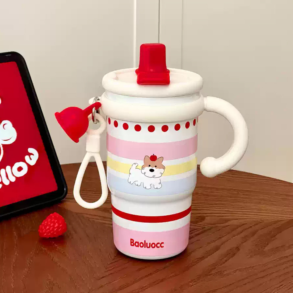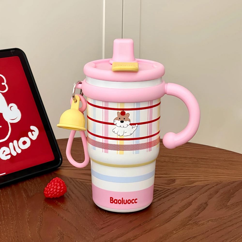 女生新款咖啡杯高颜值格纹ins风吸管杯不锈钢便携手柄保温杯礼品