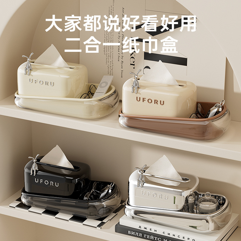亚克力纸巾盒客厅高级家用桌面多功能纸抽盒 uforu创意弹簧抽纸盒