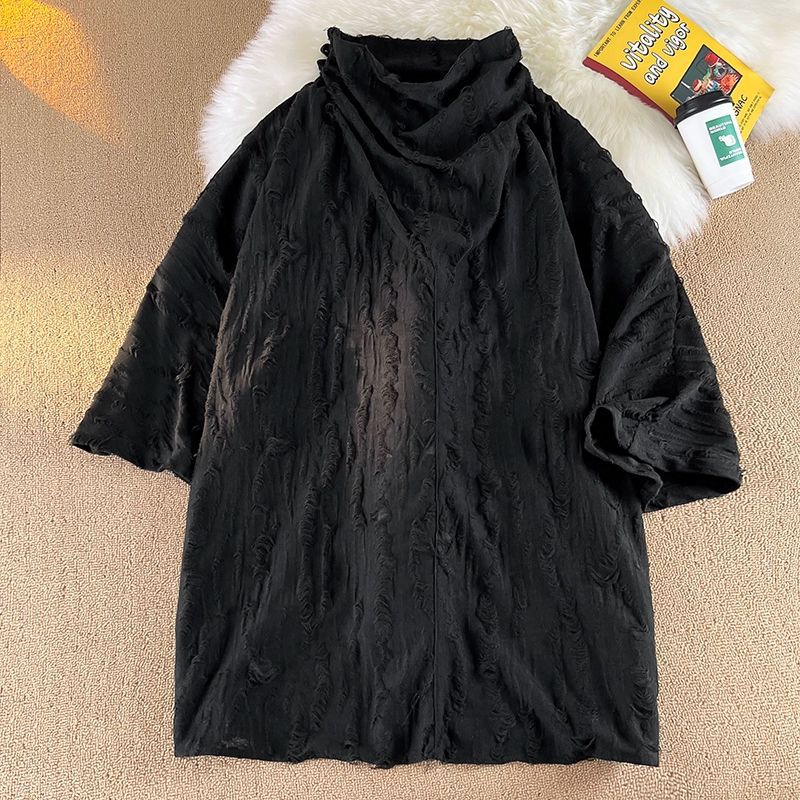不规则设计感破洞t恤男暗黑系痞帅堆领短袖宽松垂感冰丝五分半袖