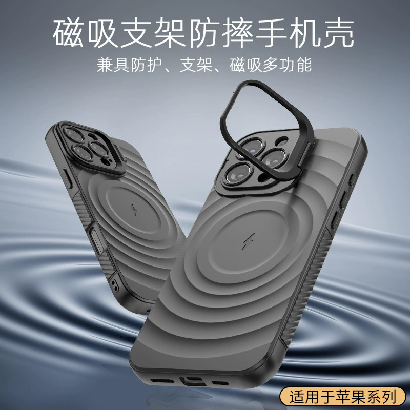 跨境适用iPhone系列手机壳镜头全包隐形支架苹果17波纹防摔手机壳