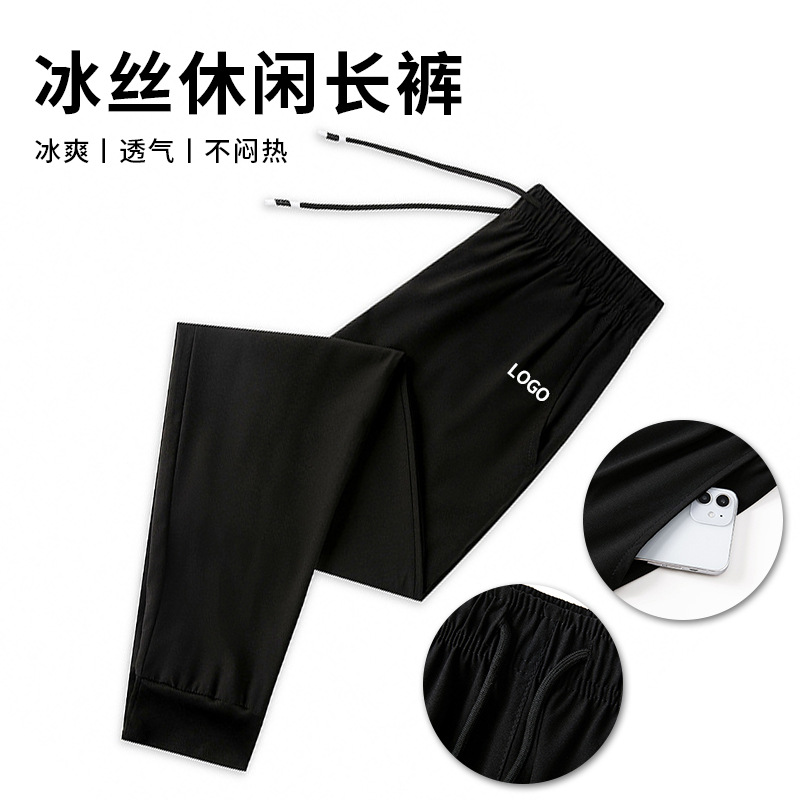 夏季冰丝薄款休闲长裤男士个性百搭纯色休闲长裤运动休闲