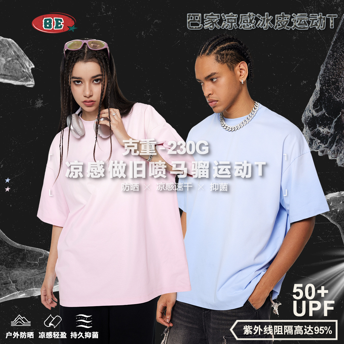 BE男装春夏230G马卡龙色系喷马骝圆领短袖宽松soronaT恤男夏