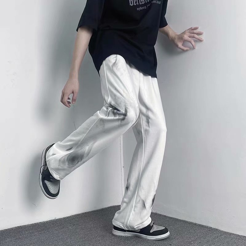 休闲裤男士潮流宽松直筒卫裤韩版港风夏季潮牌扎染百搭拖地长裤子