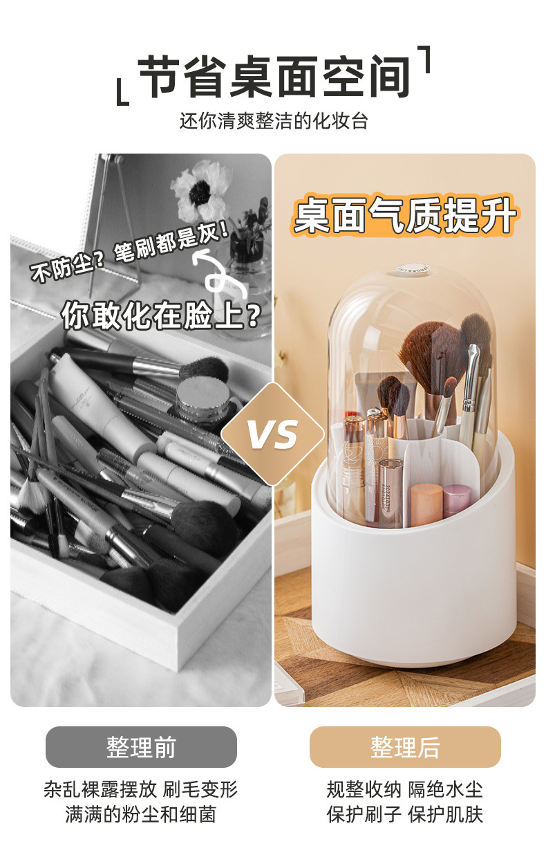 爱优汇化妆刷收纳桶防尘透明亚克力桌面口红化妆品收纳盒高级感