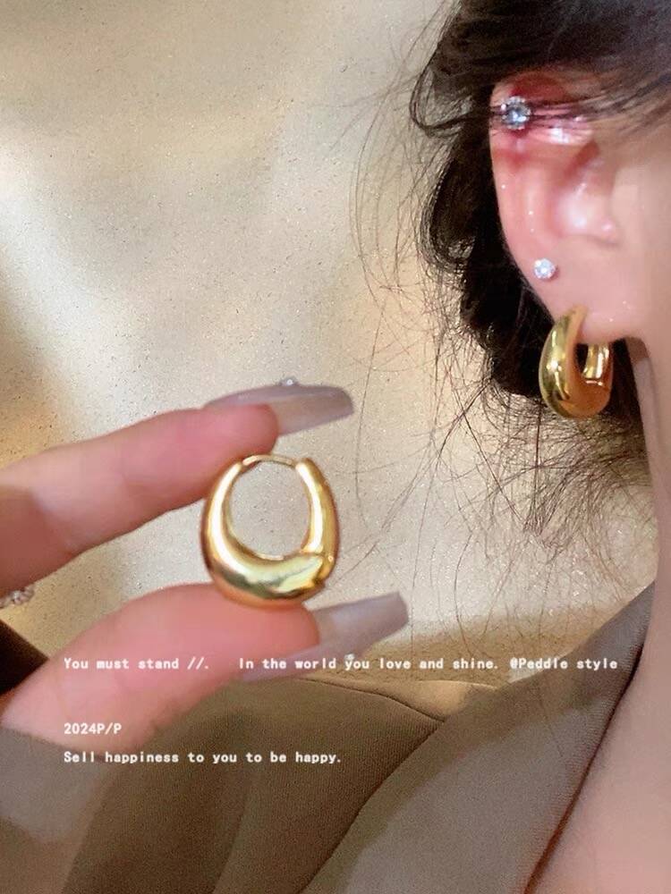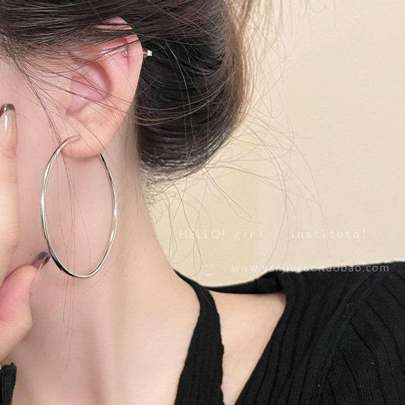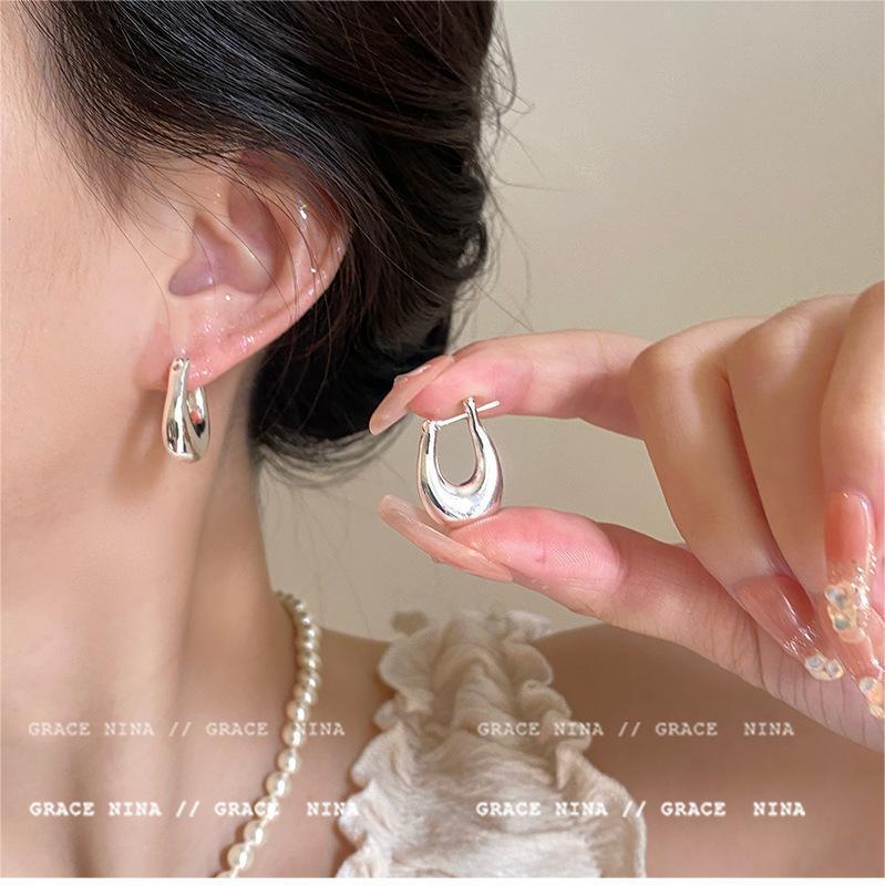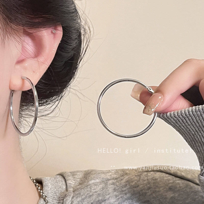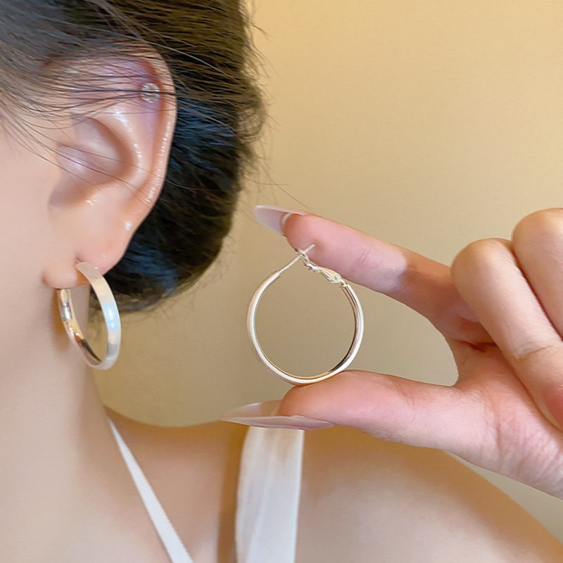 ins风简约银针百搭素耳圈轻奢通勤金属圆圈耳环女高级感耳饰