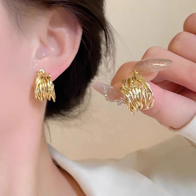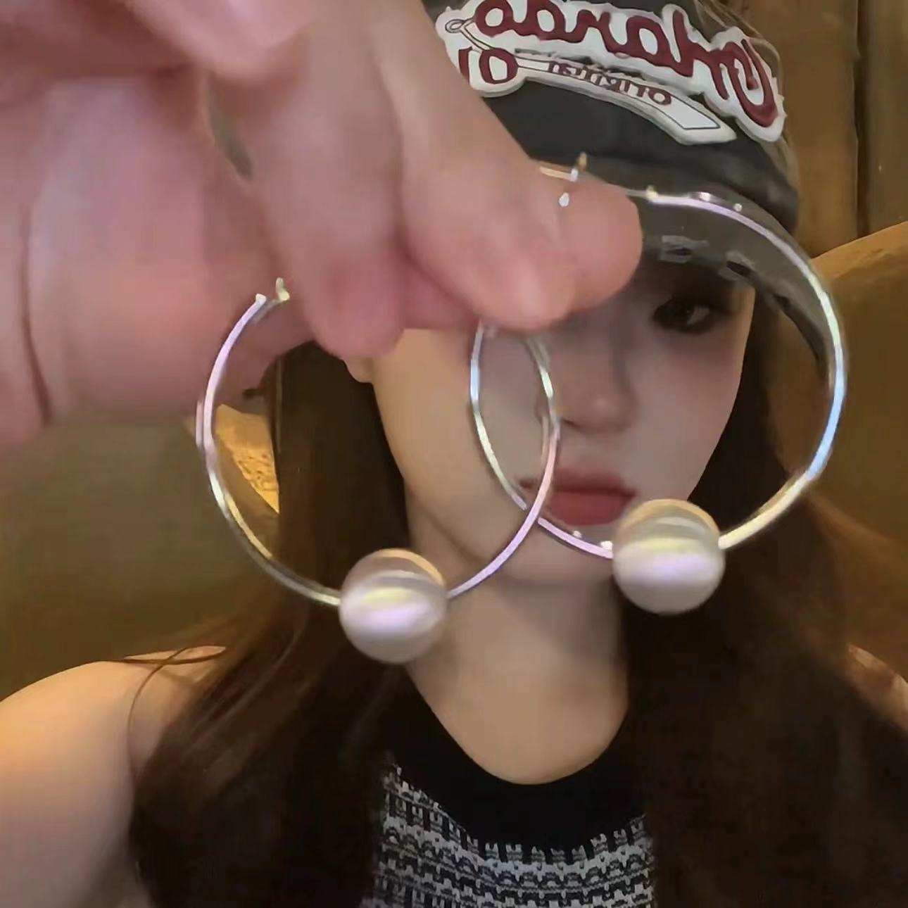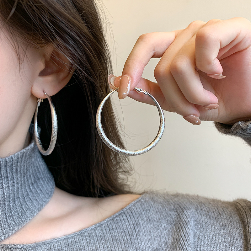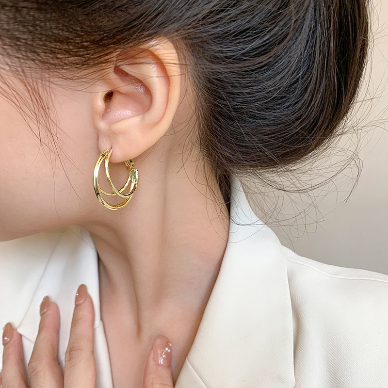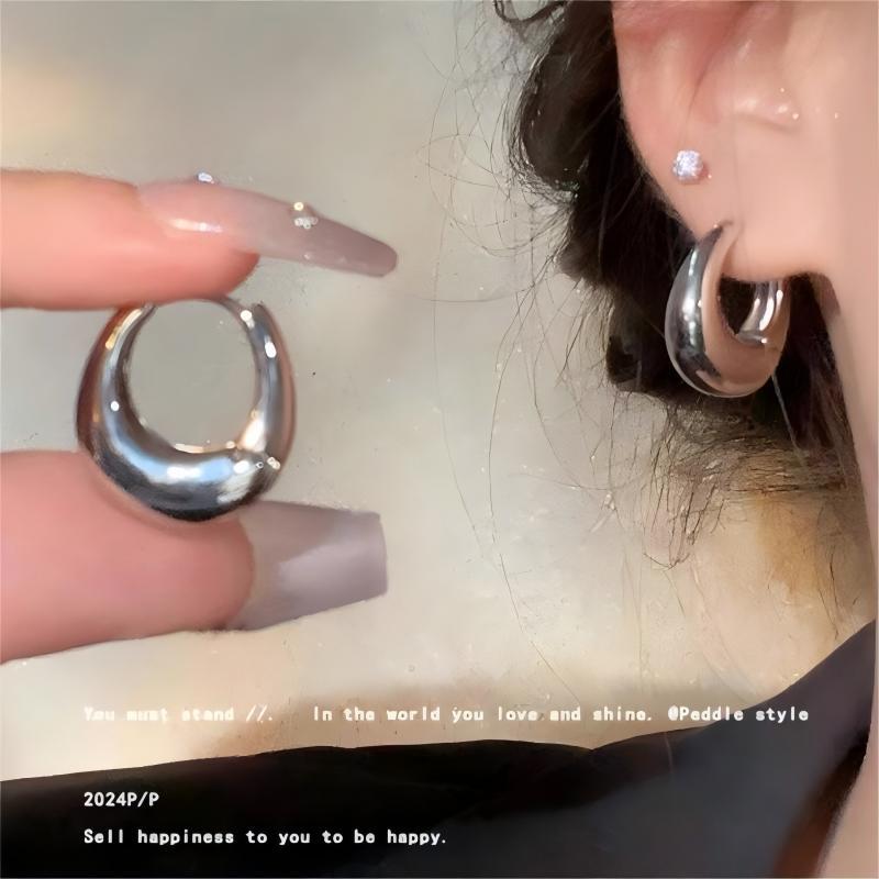 ins风简约银针百搭素耳圈轻奢通勤金属圆圈耳环女高级感耳饰