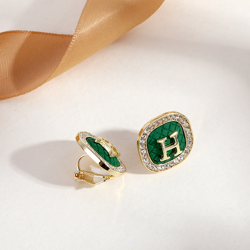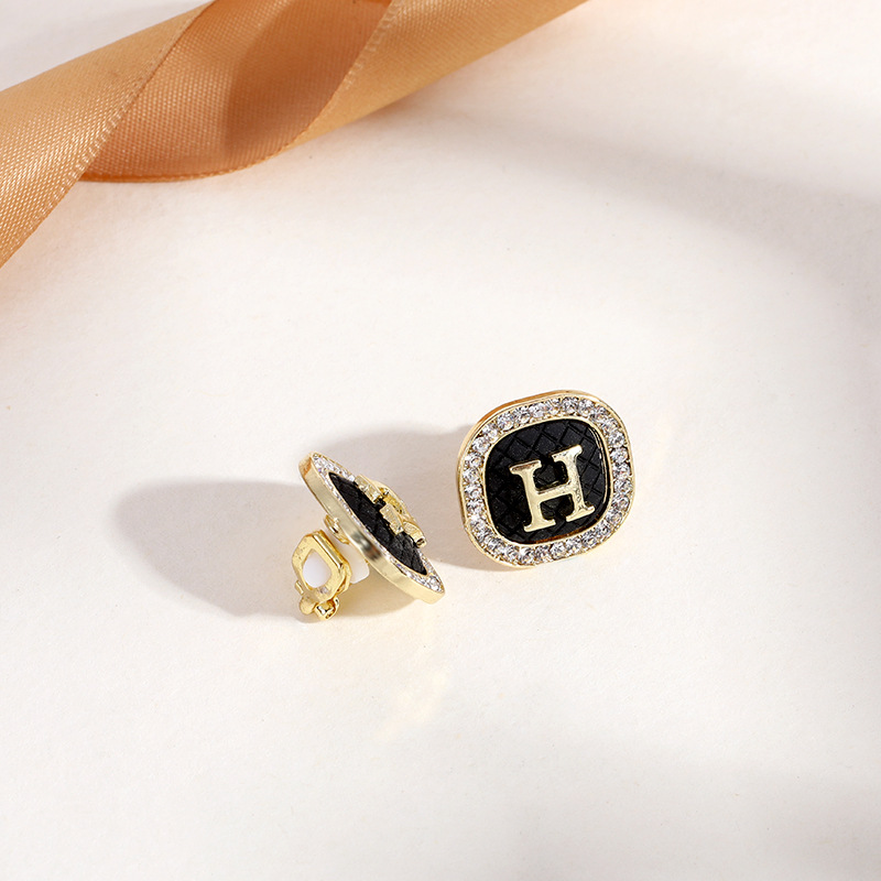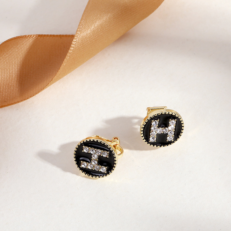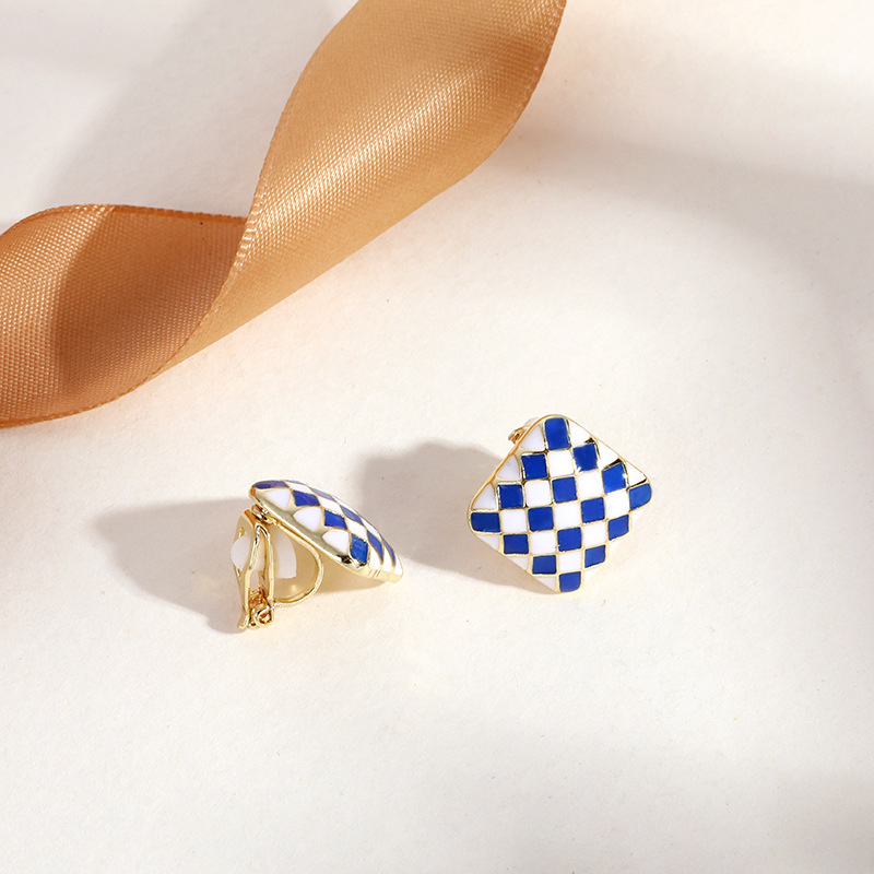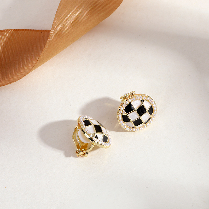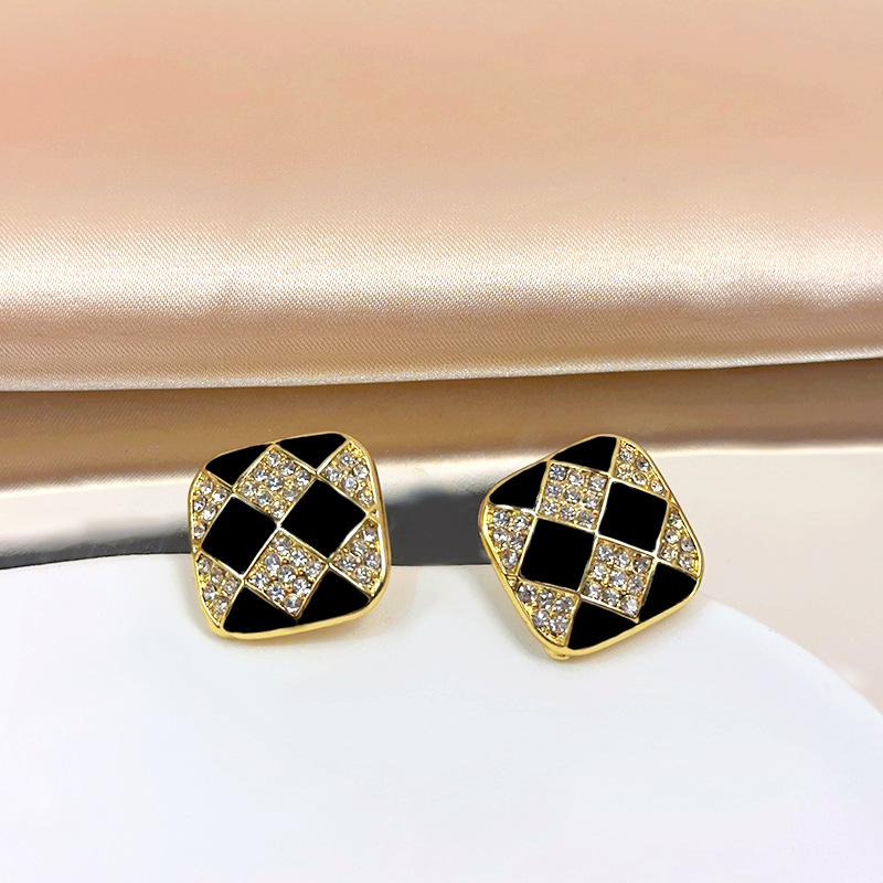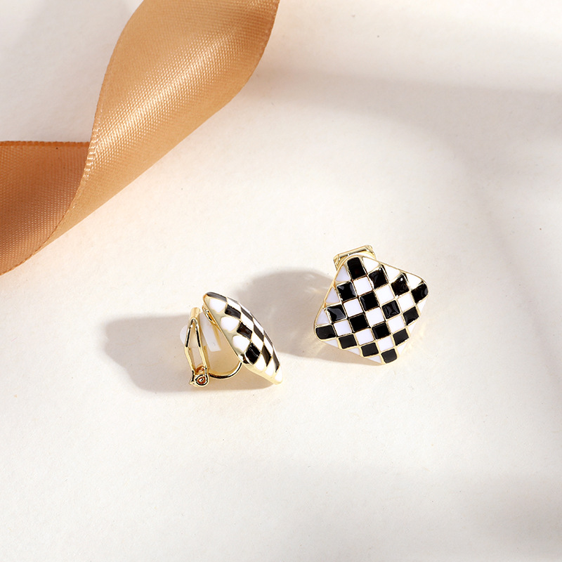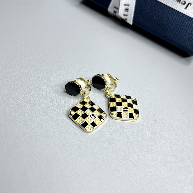 - EJ0159黑菱形格纹耳夹