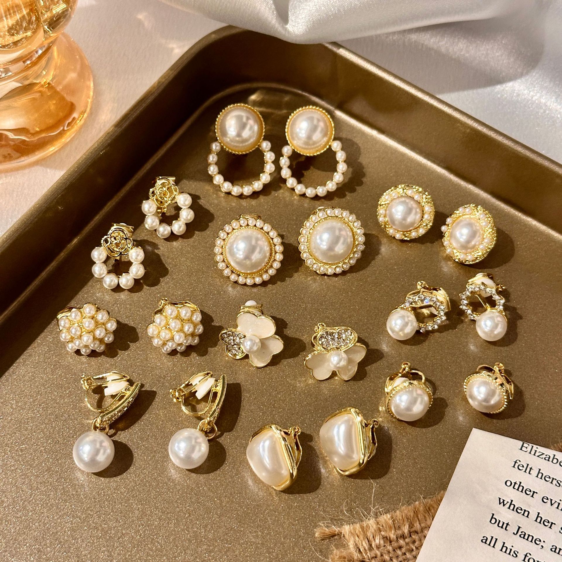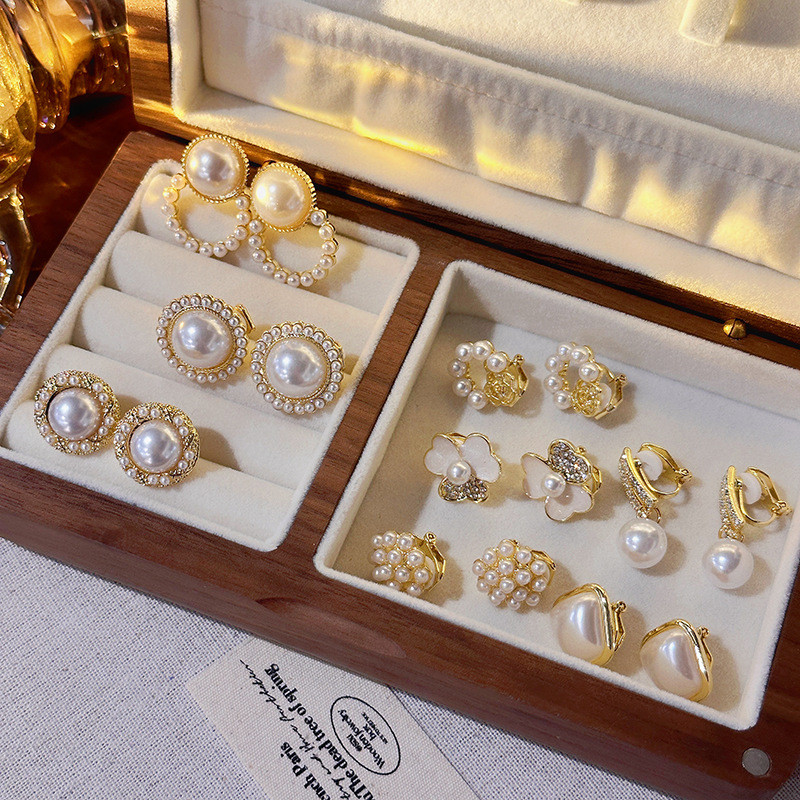 珍珠耳夹无耳洞高级感耳骨夹蝴蝶结耳饰气质耳挂轻奢方块耳环