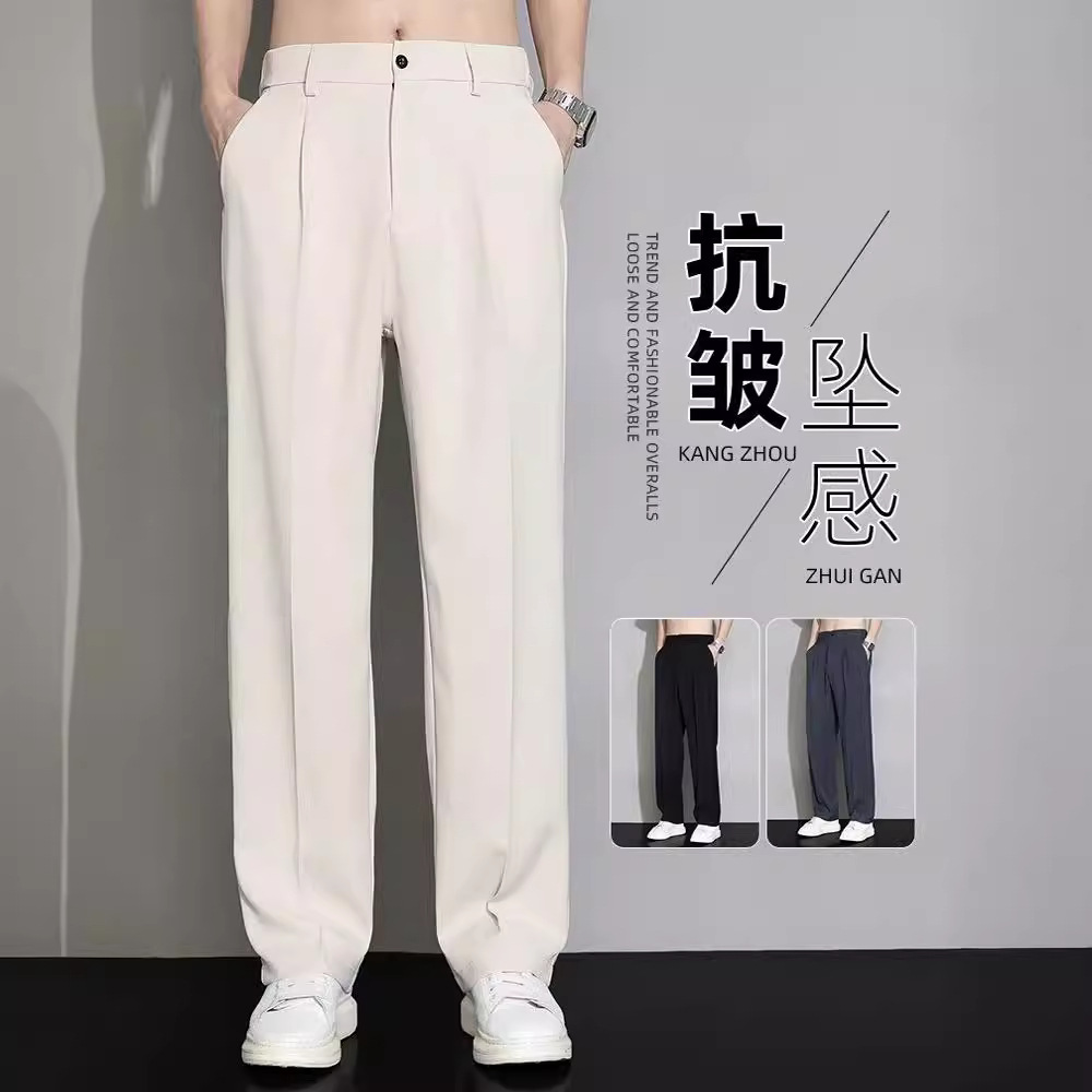 夏季垂感休闲西裤男直筒宽松港风坠感韩版阔腿西装拖地裤半松紧
