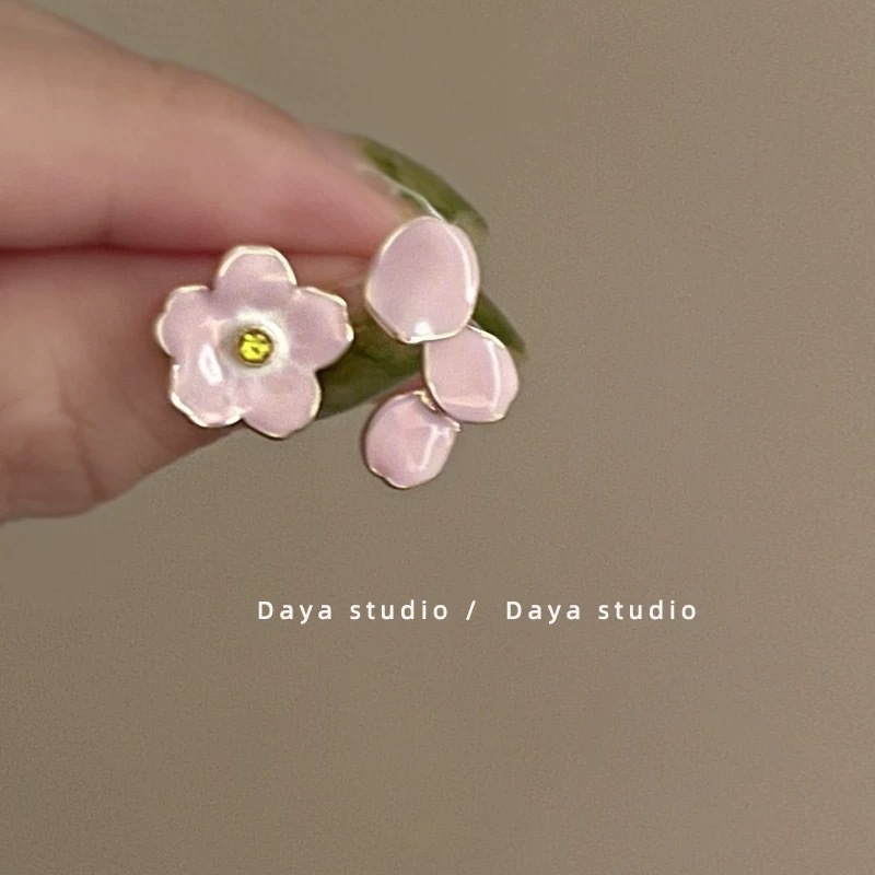 浮雕雾霾蓝法式复古滴釉玫瑰花朵锆石耳环女轻奢高级感小众气质