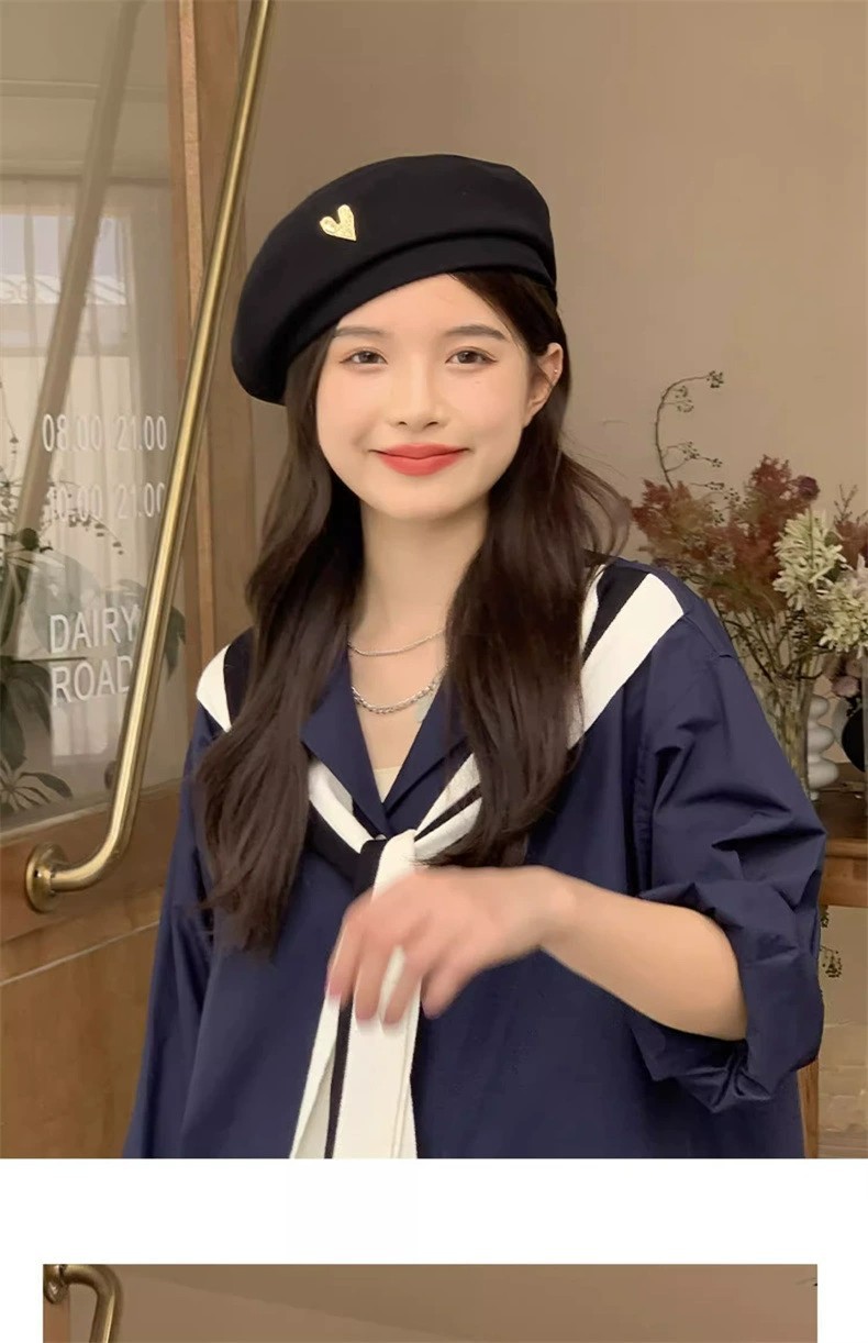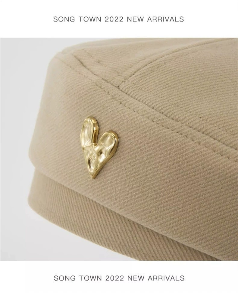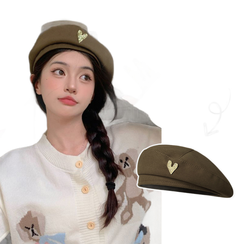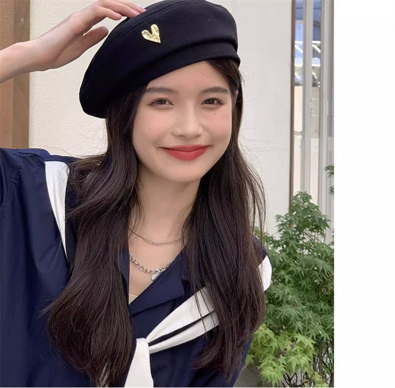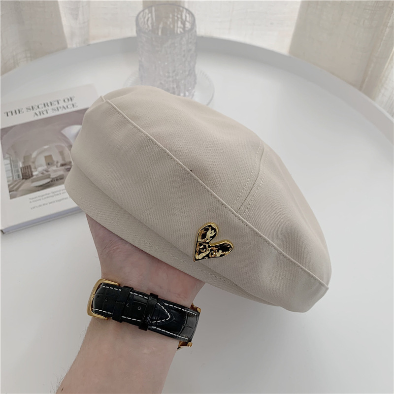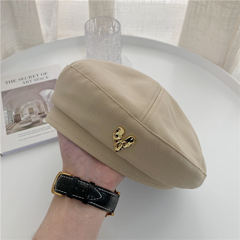 贝雷帽女秋冬爱心金属标毛呢保暖帽子ins小红书网红显脸小画家帽
