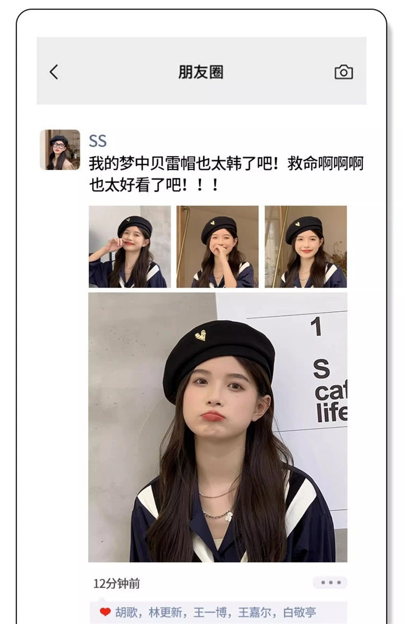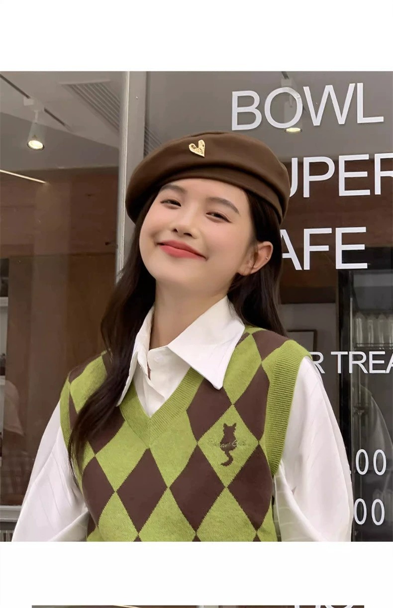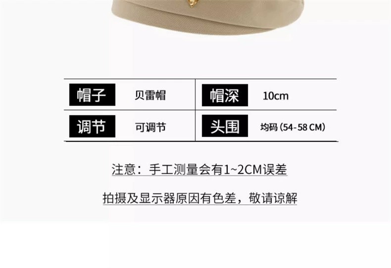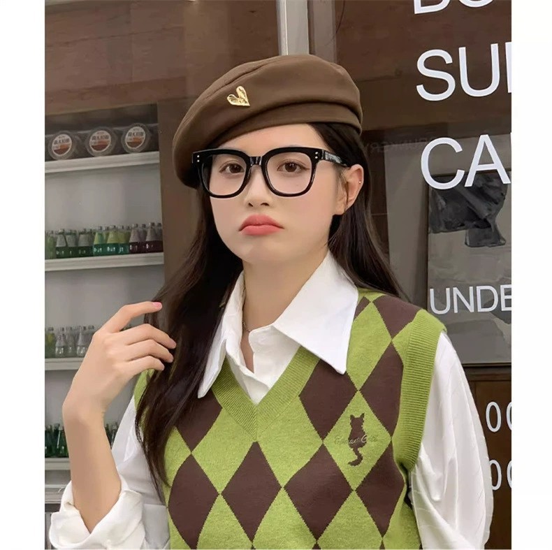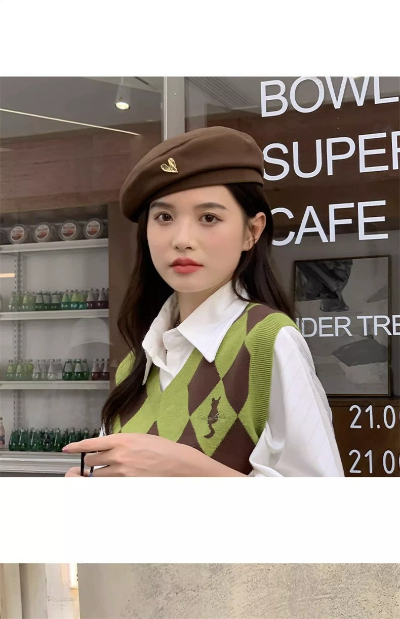 贝雷帽女秋冬爱心金属标毛呢保暖帽子ins小红书网红显脸小画家帽
