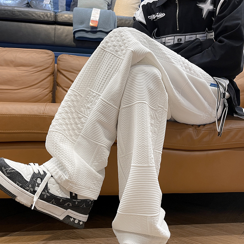 春秋季港风日系设计感大码纹理感提花休闲直筒裤男垂感宽松卫裤男